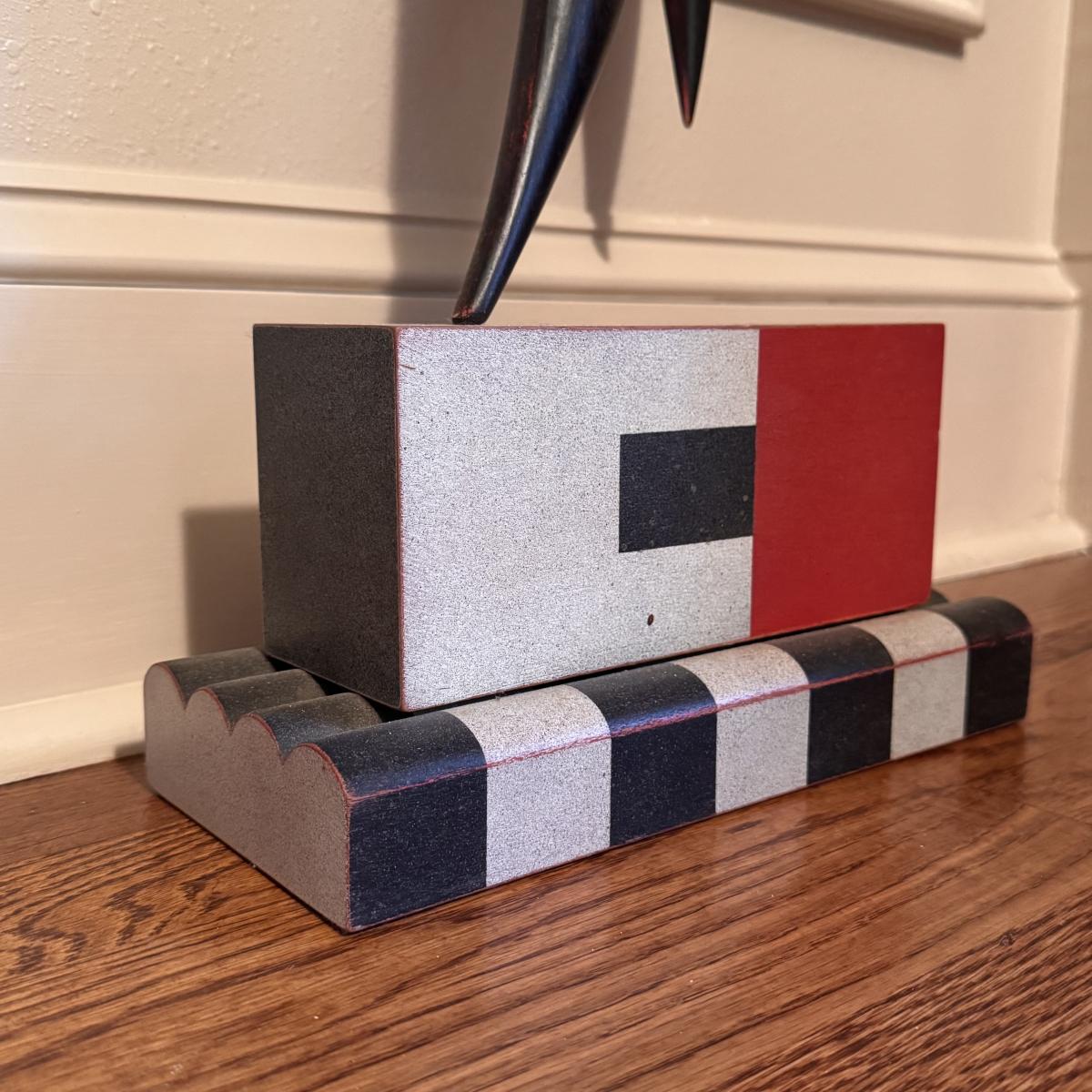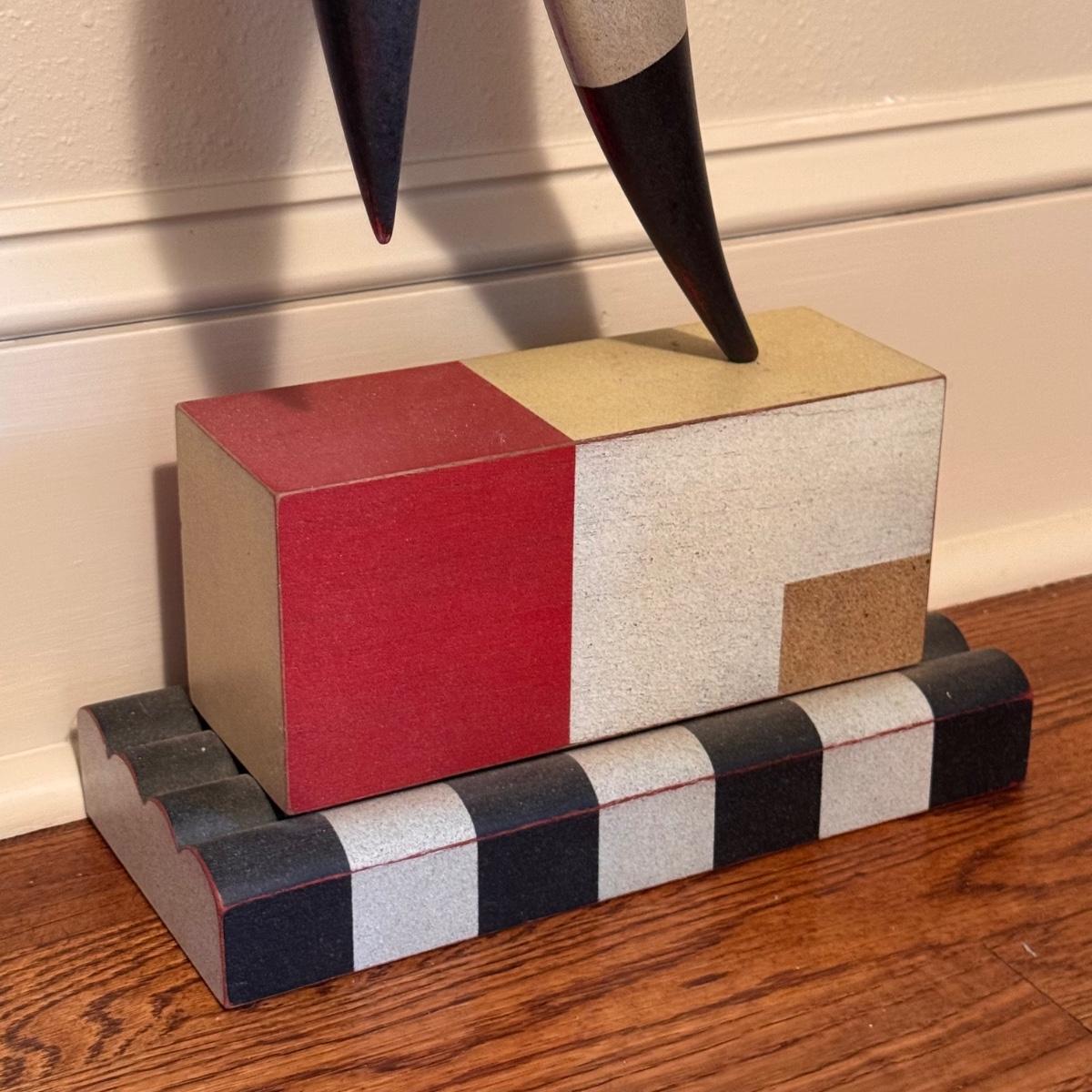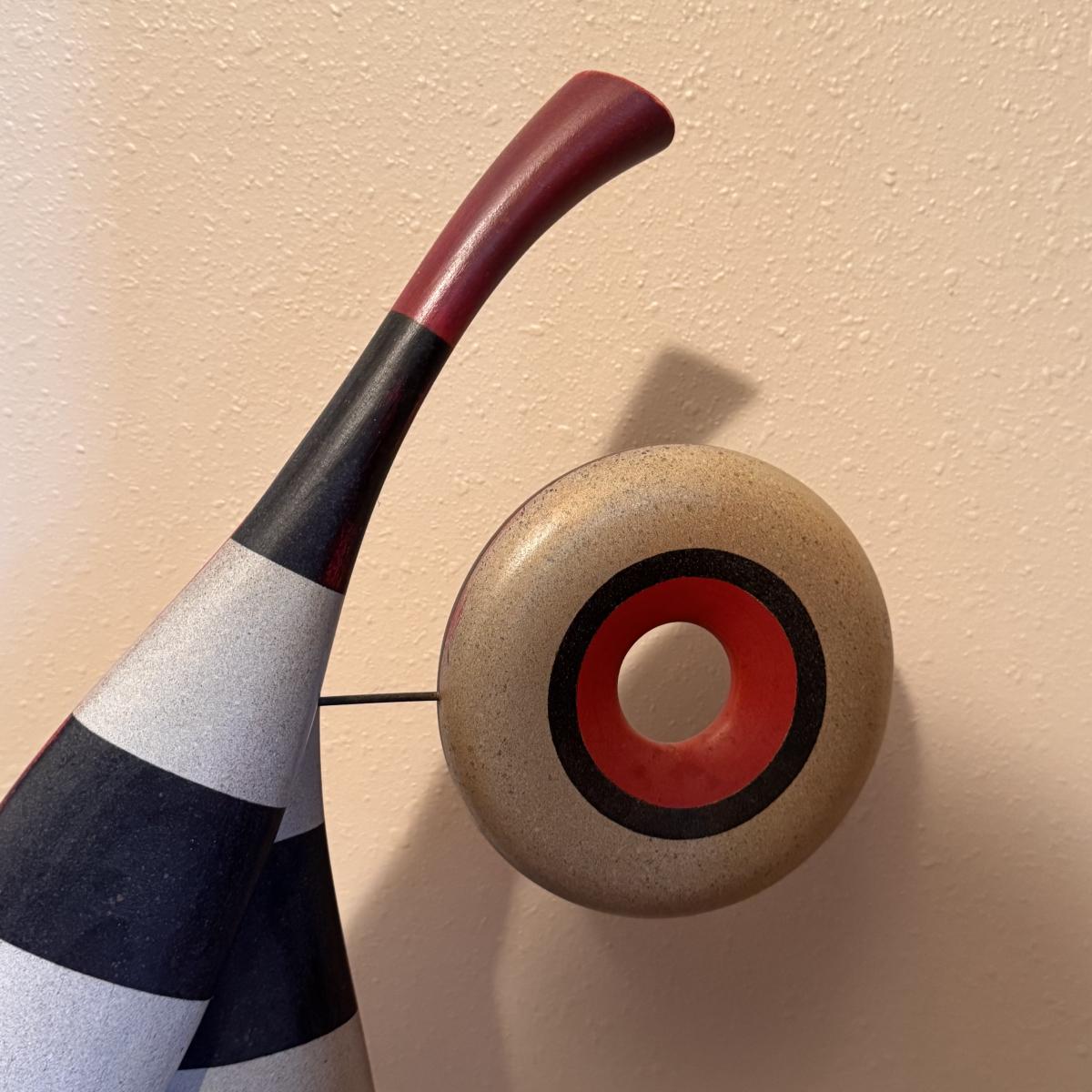 This lot includes one black and white striped, multi-shaped sculpture by Sean O’Meallie. The sculpture is all one piece and is made of wood. It appears to be signed and dated with 4.04 on the bottom. The sculpture measures 11” x 4.5” x 26”H. Shipping available. Shipping can be costly. We suggest contacting our preferred local shipping provider, Postage Express, with dimensions and getting an estimate before bidding: (828) 255-9250 or shipping@postageexpressnc.com.