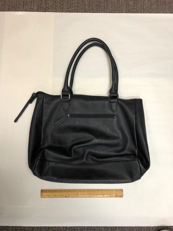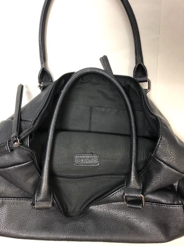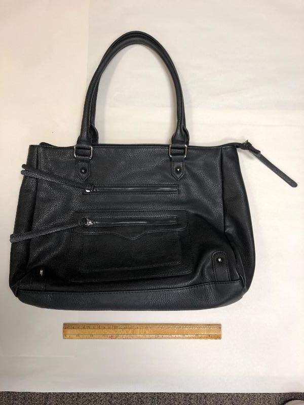 Gently used Apt. 9 Handbag. Black. Multiple zipper pockets. Good size at about 15" across.
