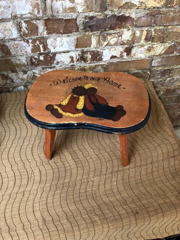 Here is a 13 x 9" Black Art decorative wooden stool..Good condition...