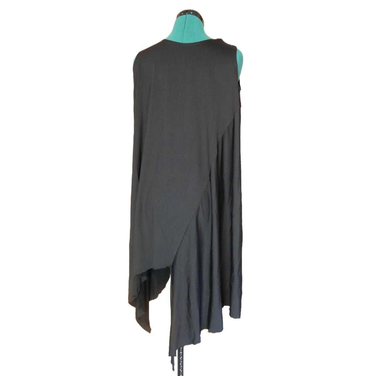 Black unmarked, unsized asymmetrical dress, best fits women's size M.