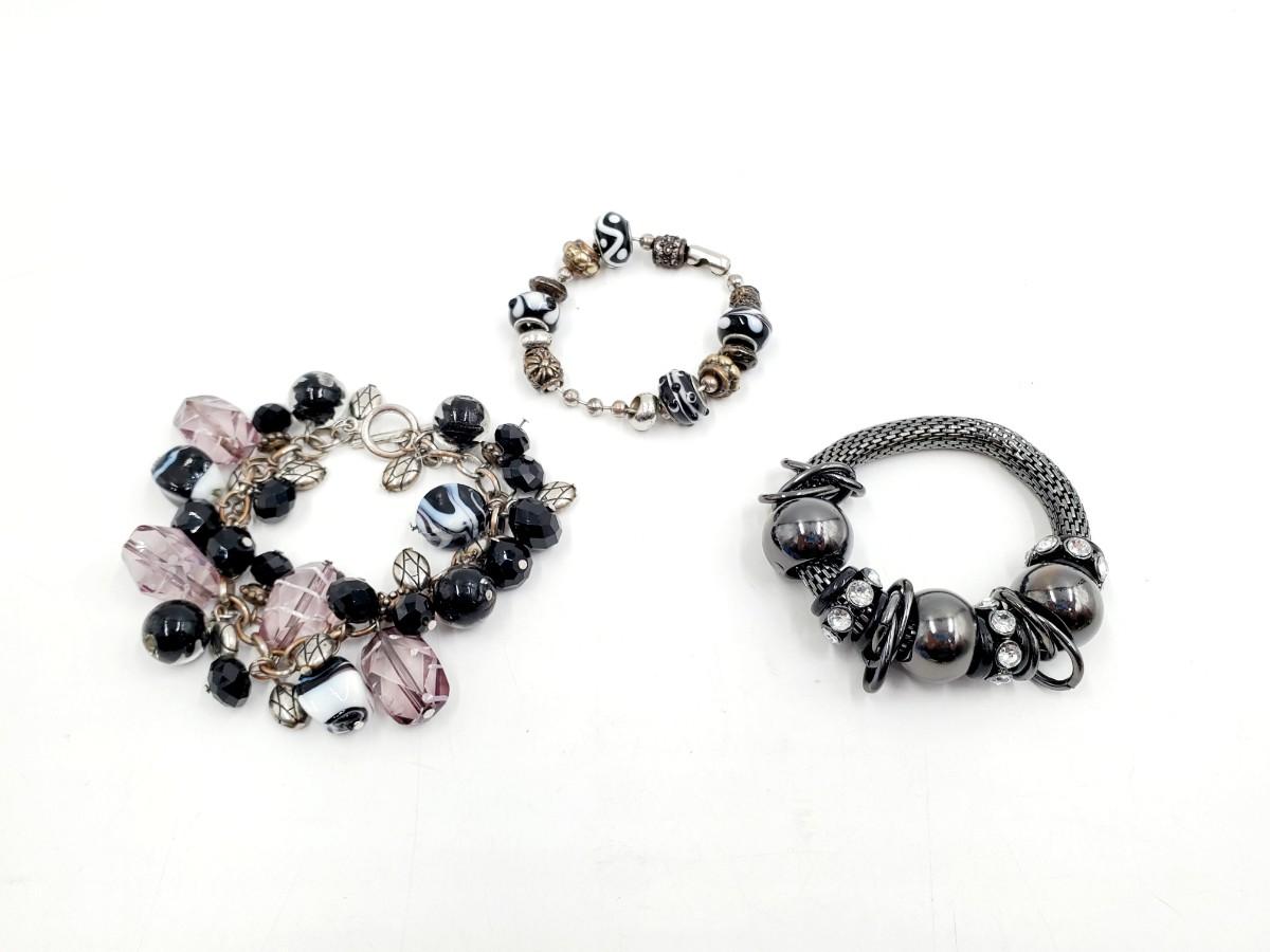 BLACK BEADED AND METAL BRACELET BUNDLE OF 3