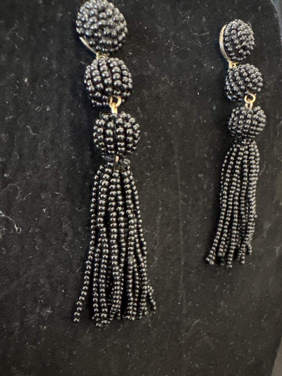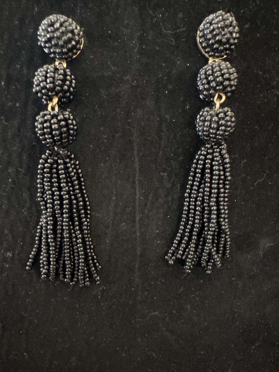 Black beaded drop dangle earrings