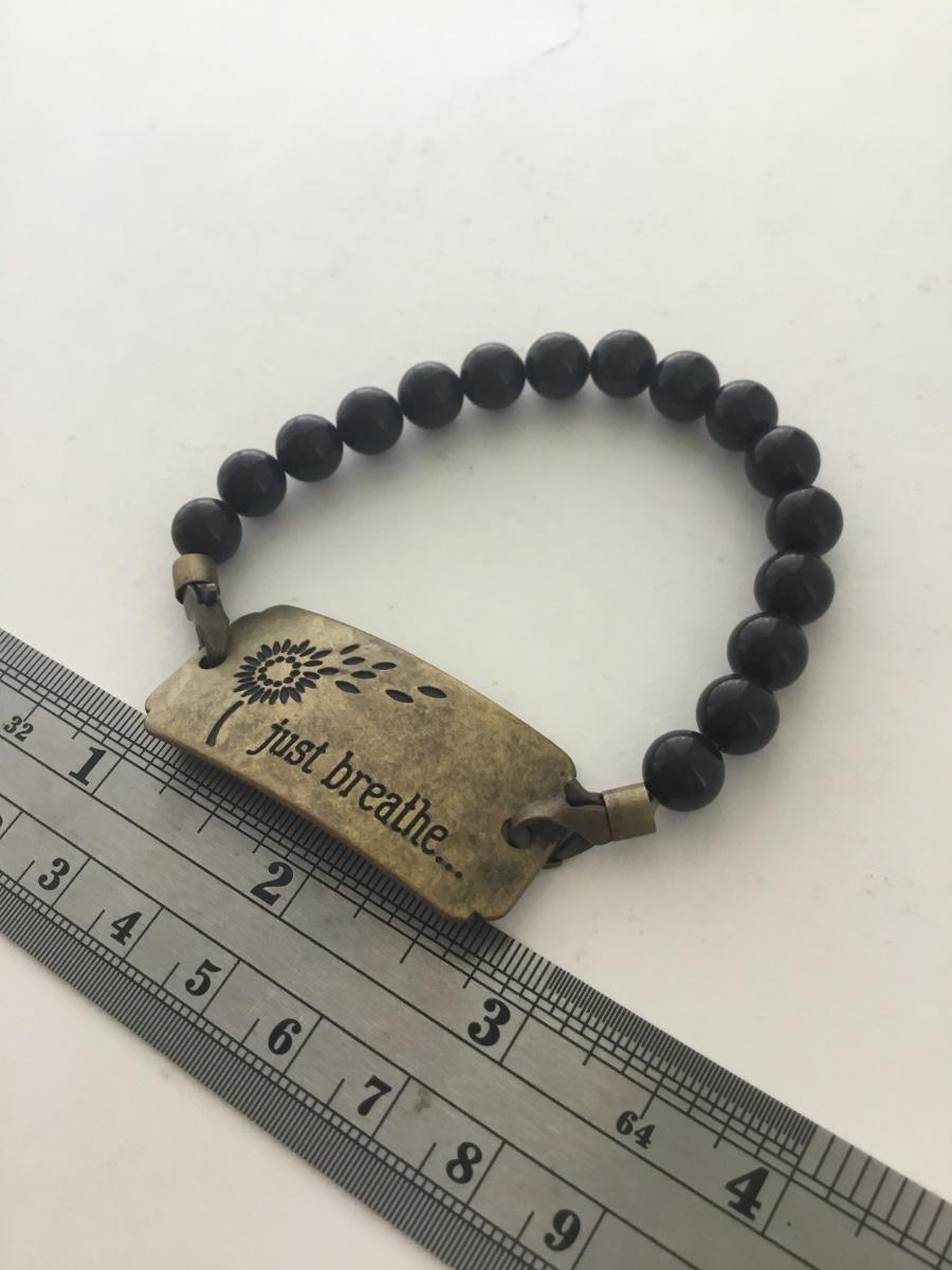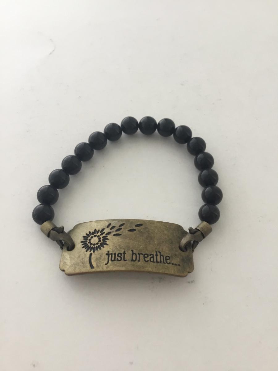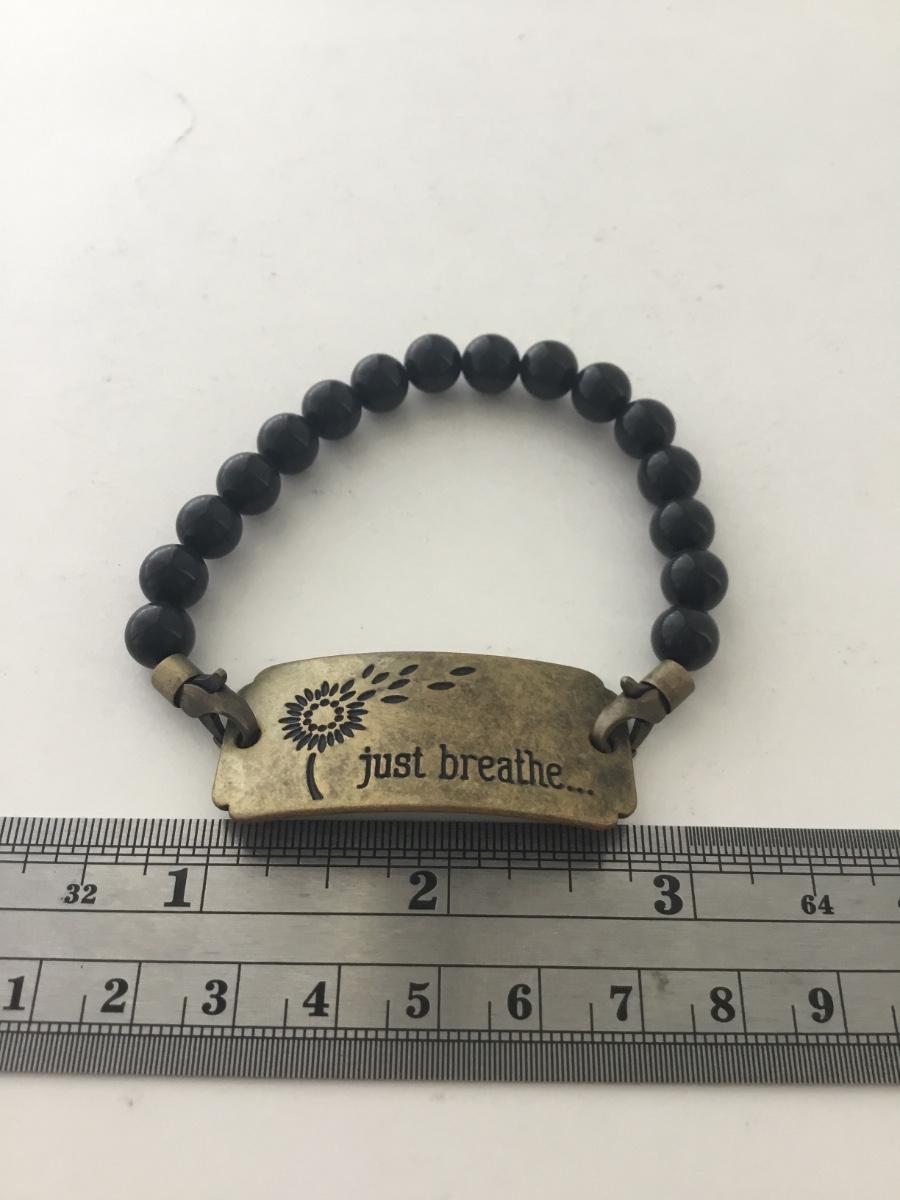 Black beaded just breathe fashion bracelet