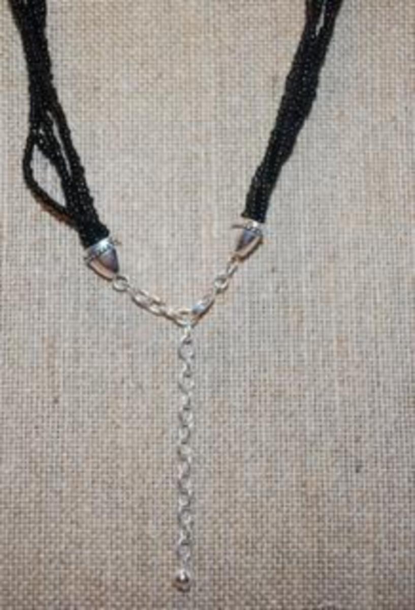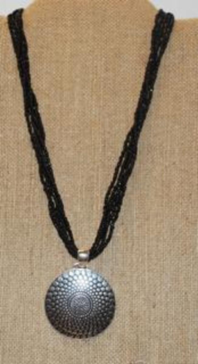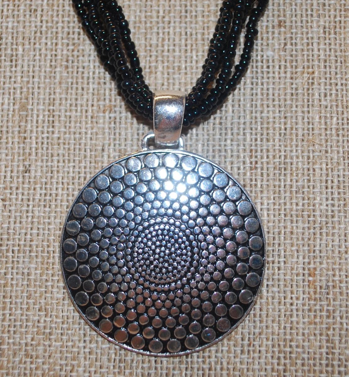 Black Beaded Rope with "Circle of Circles" Pendant 20" L