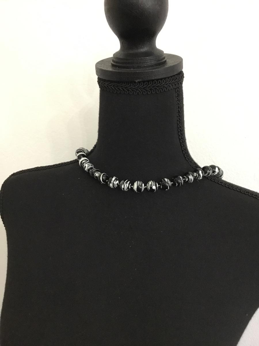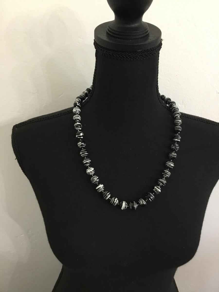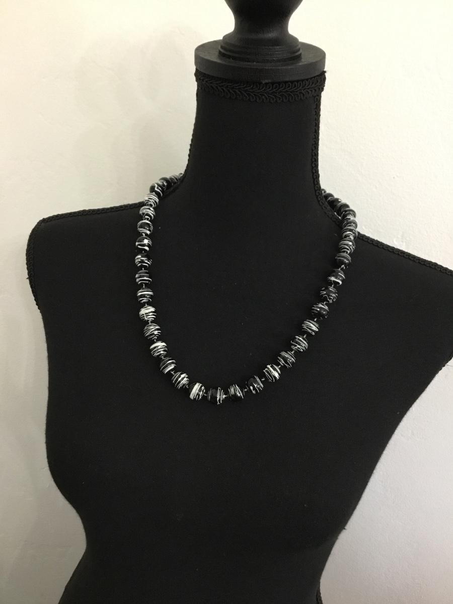 Black beaded with white splat necklace