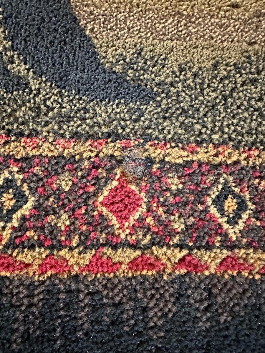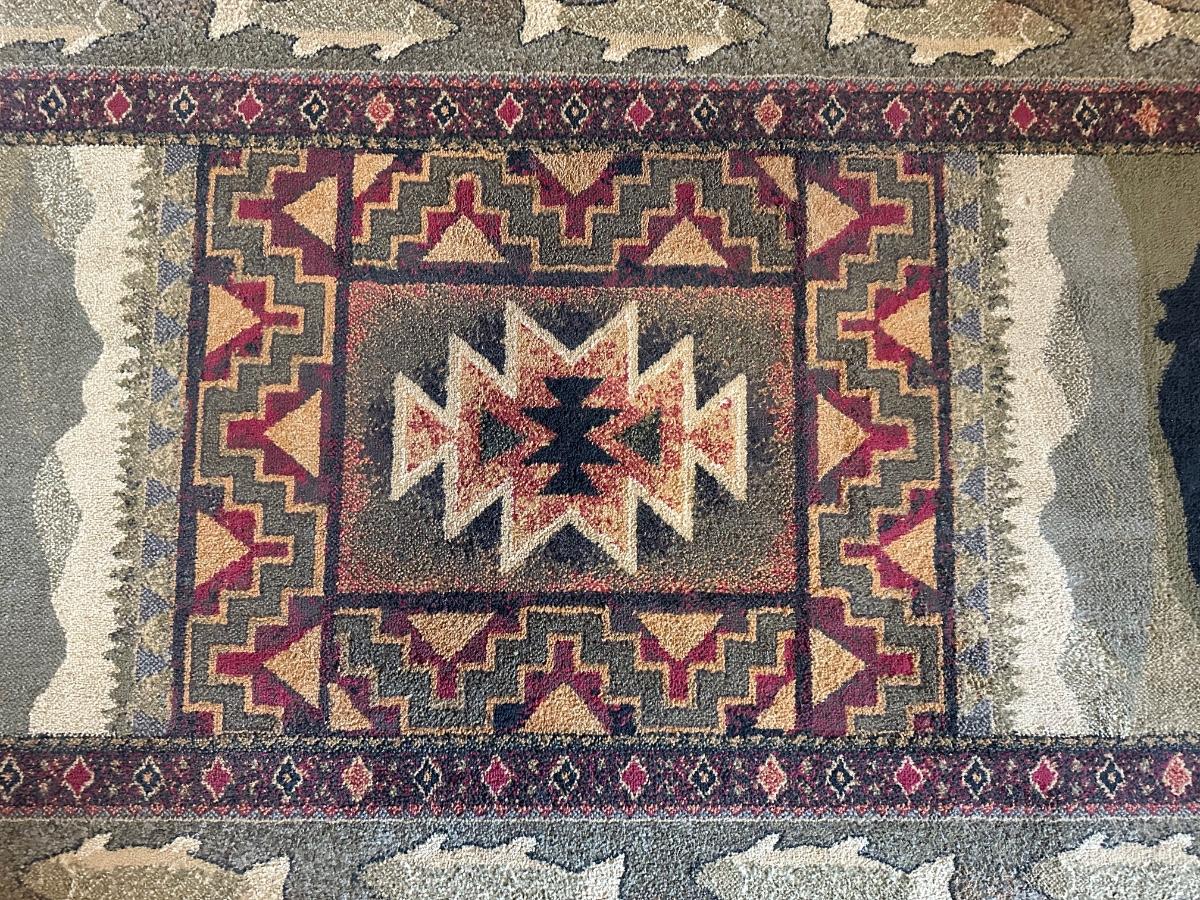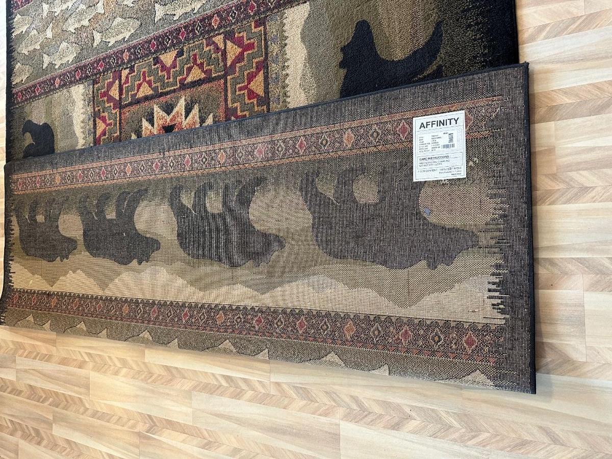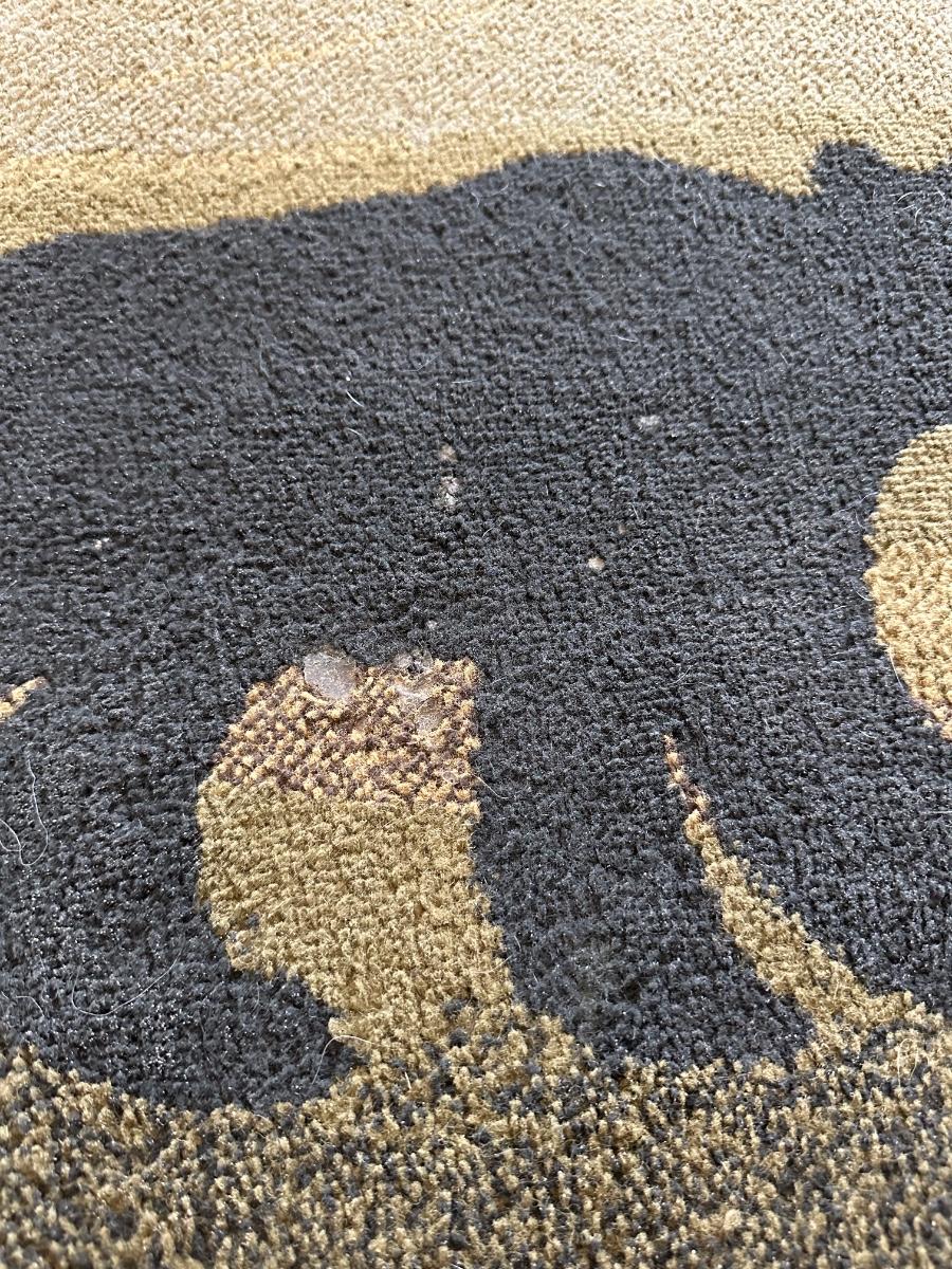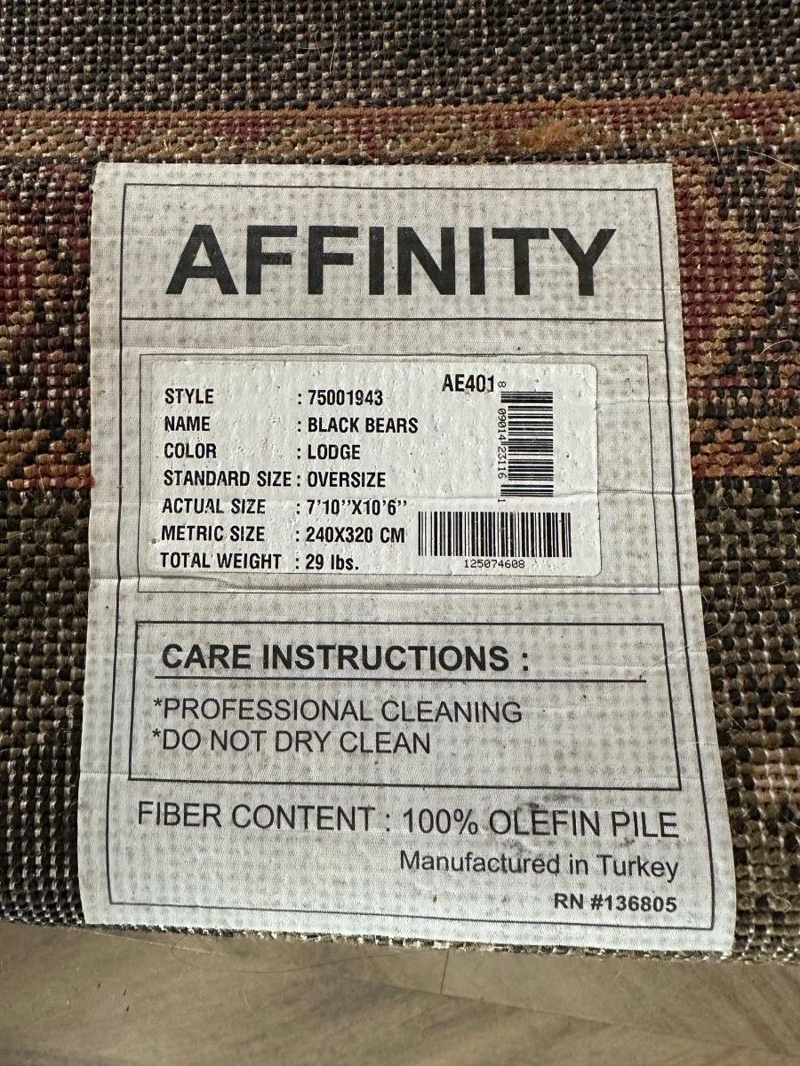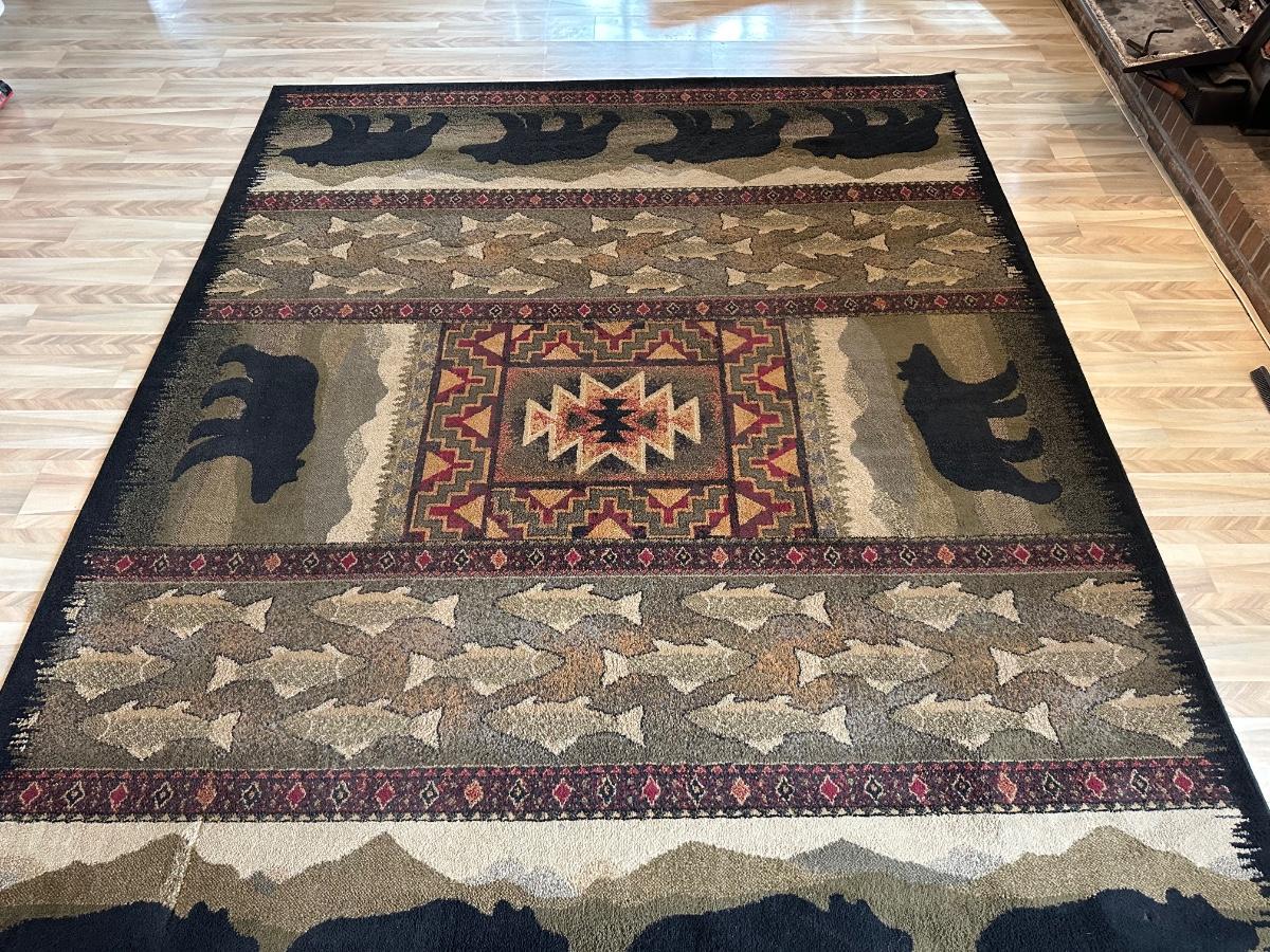 Black bears oversized area rug. Did see a burn mark, see picture. All details and size are in the pictures.