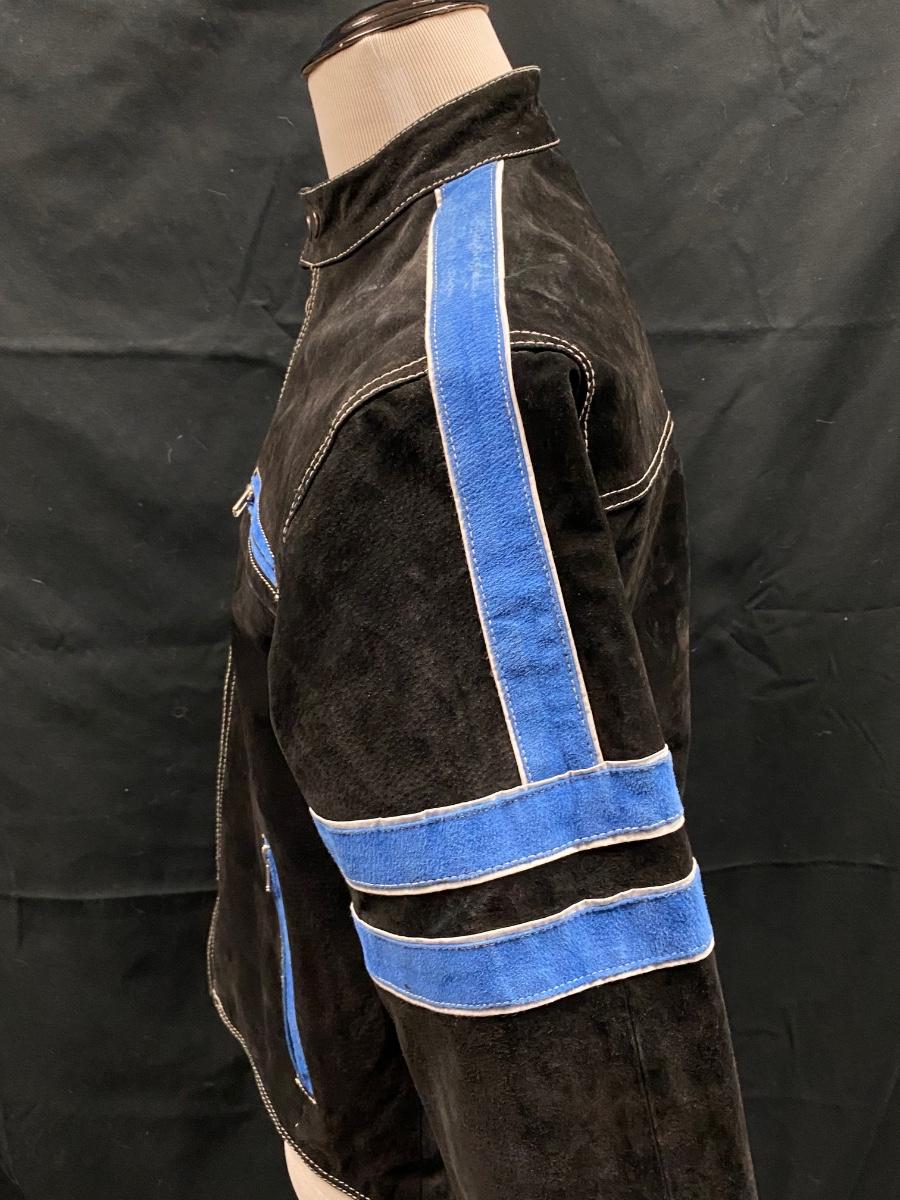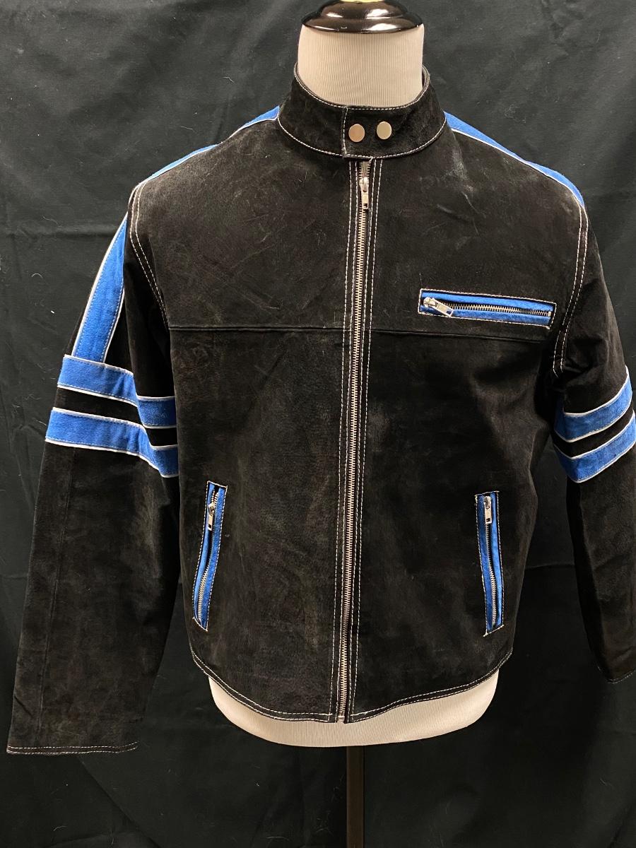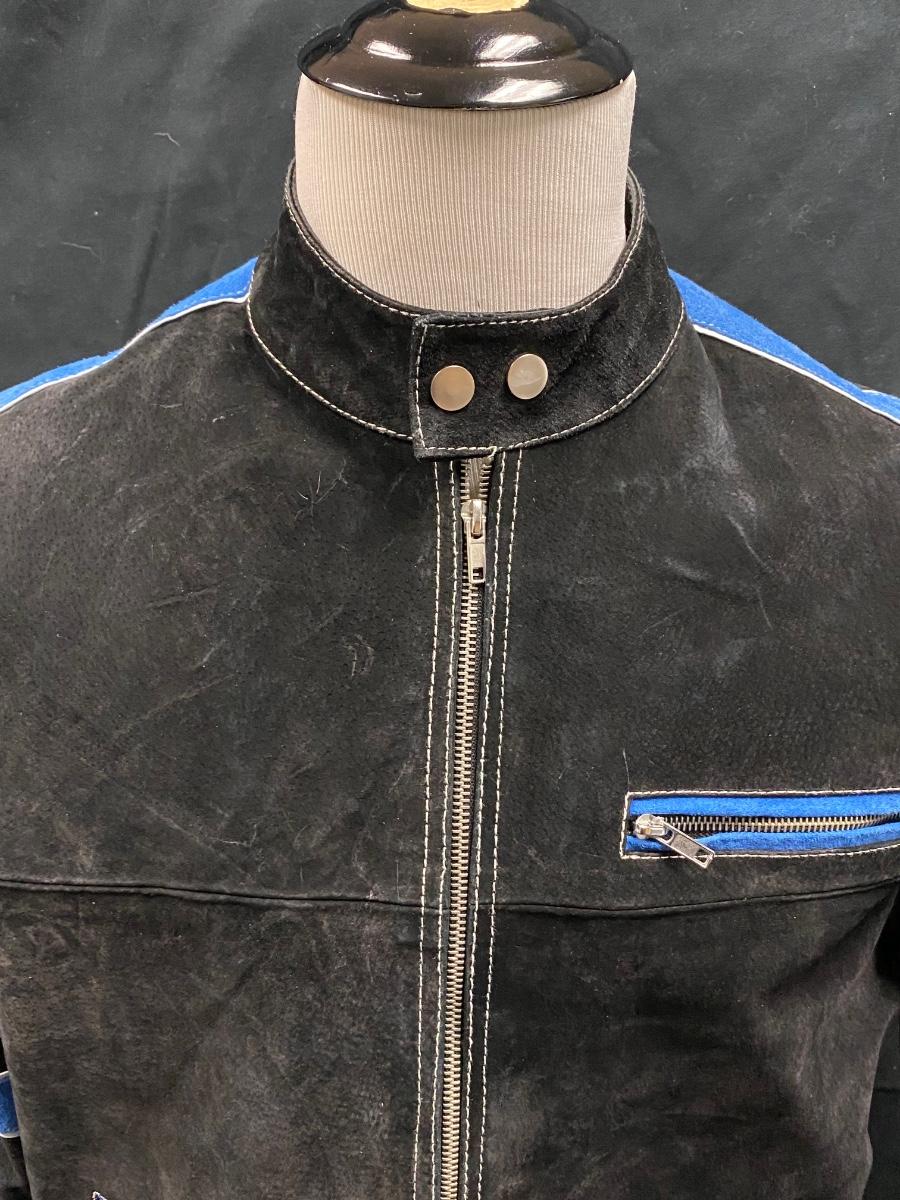 Black & Blue Suede Moto Motorcycle Jacket Vintage Leather Medium