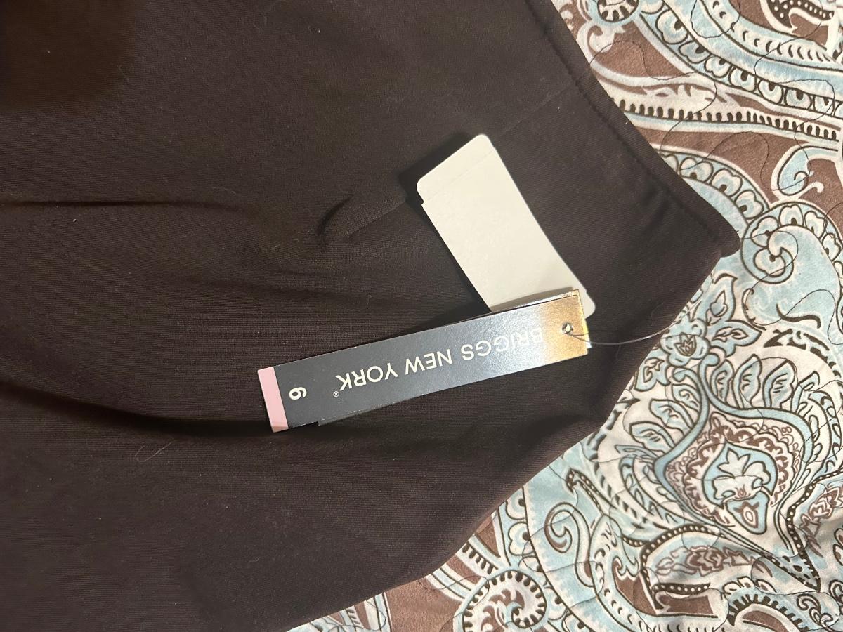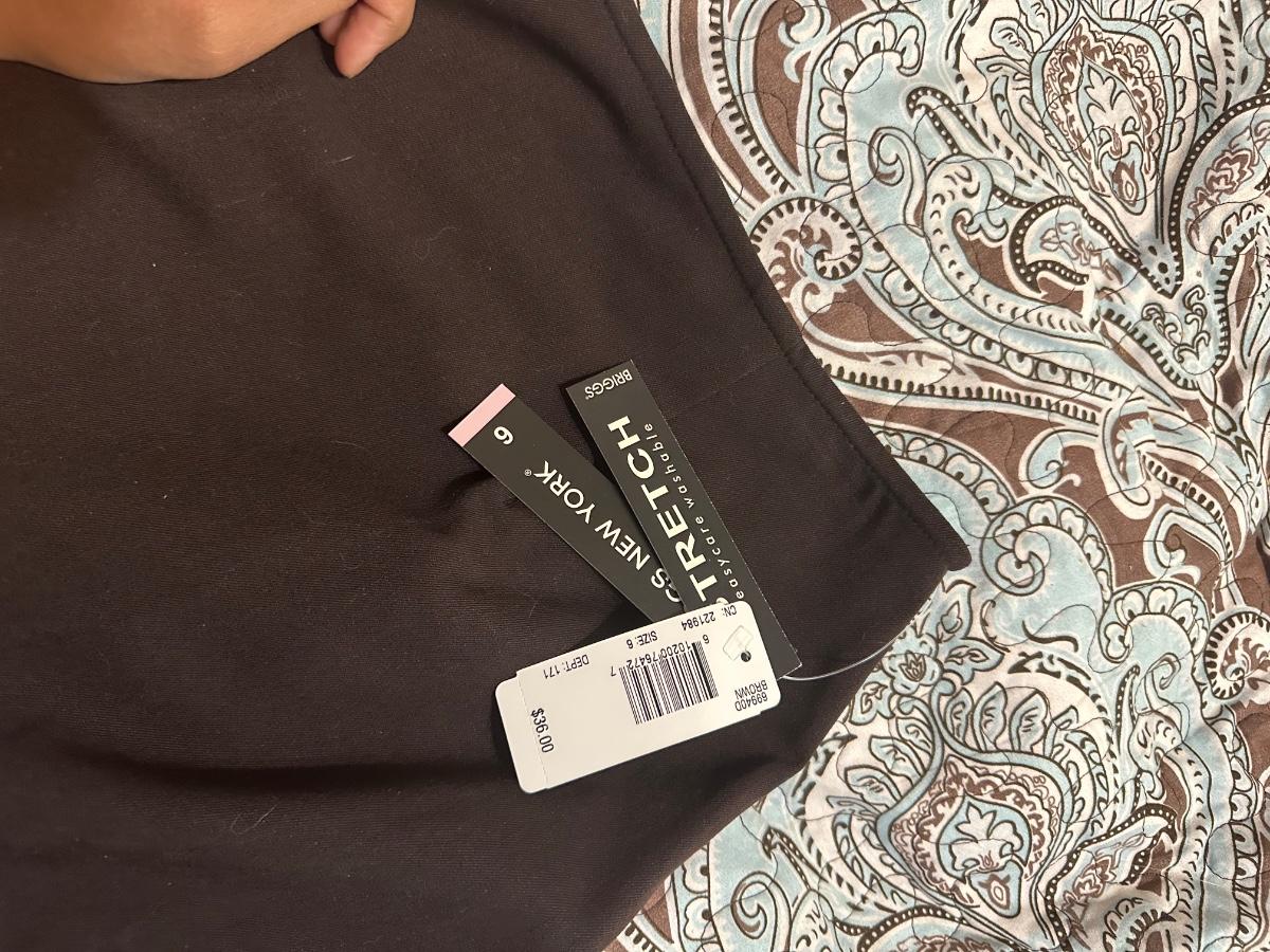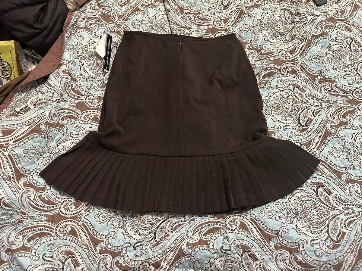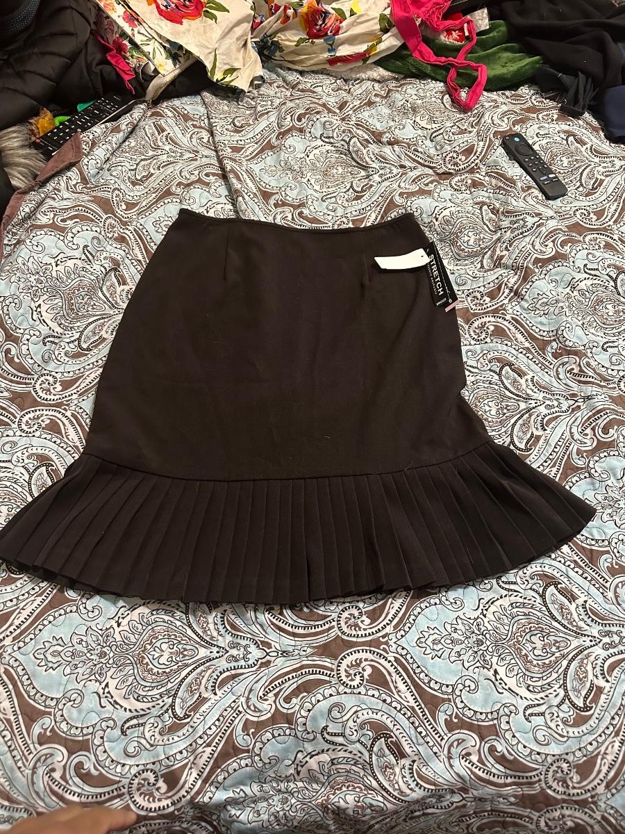 Brown Briggs New York A-line skirt with a pleated hem and a stretch fabric blend.