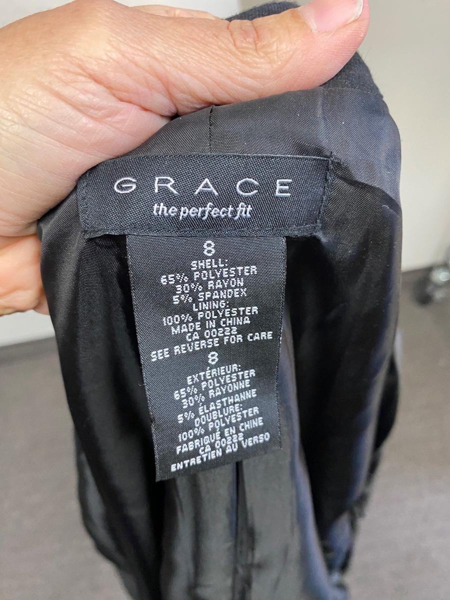 Black Business Office Attire Suit Jacket by Grace size 8. Good condition. Faux pockets.