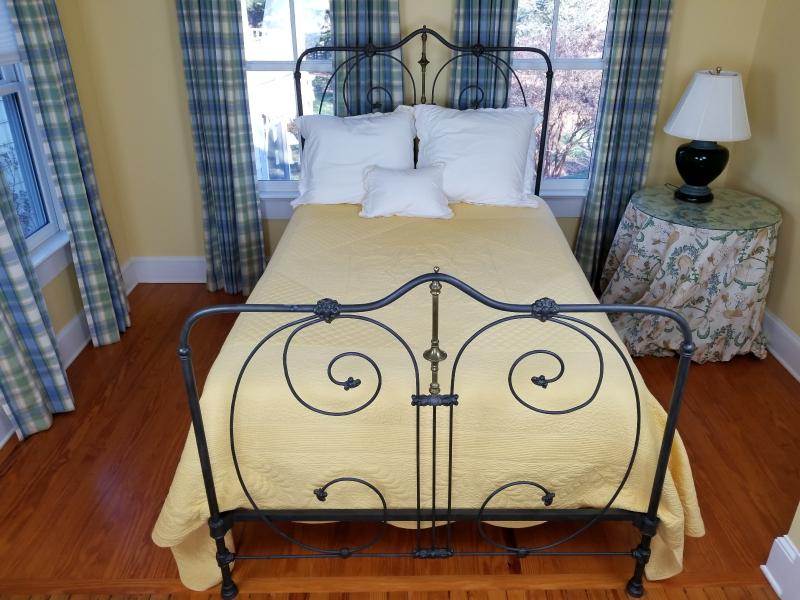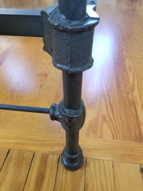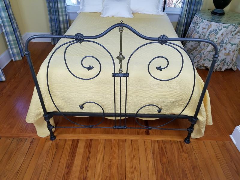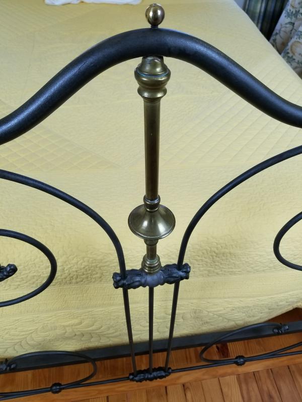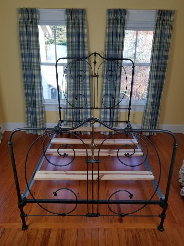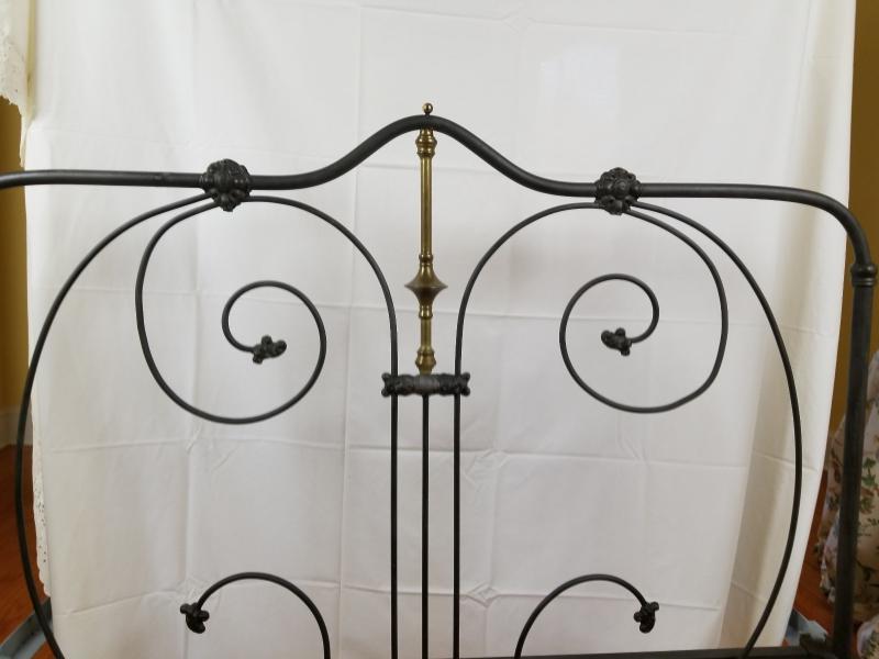 Up for Auction is a Full Size Wrought Iron and Brass Bed. This bed is dark gray in color.