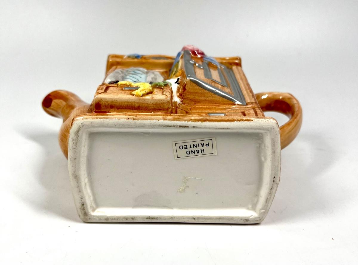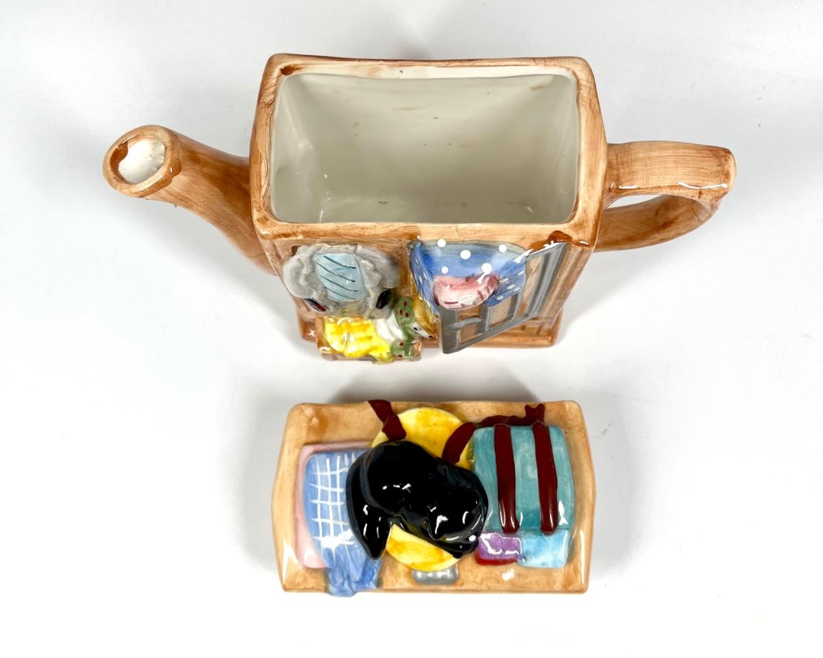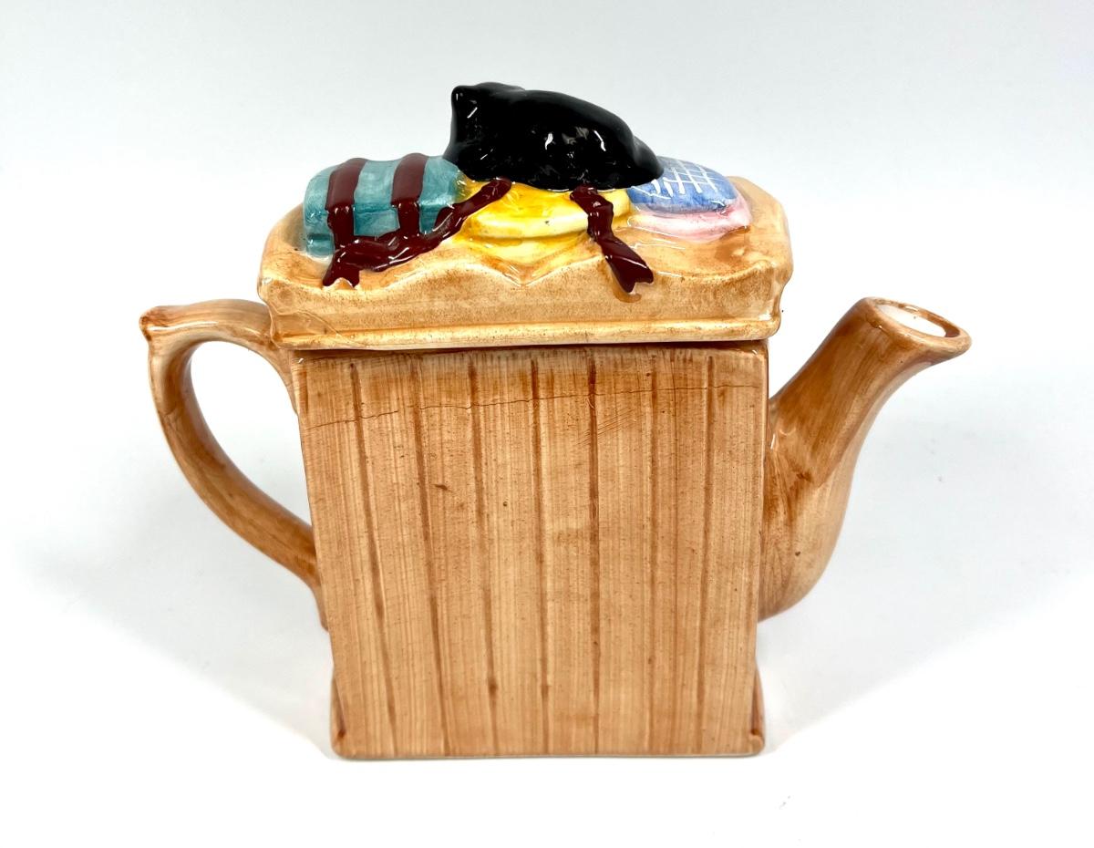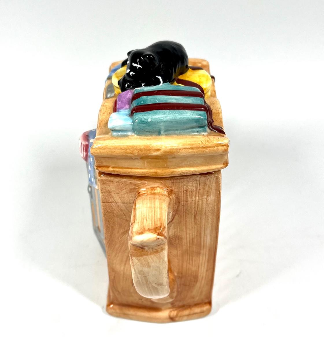 Hand Painted Black Cat on Dresser Novelty Ceramic Teapot. Good condition.