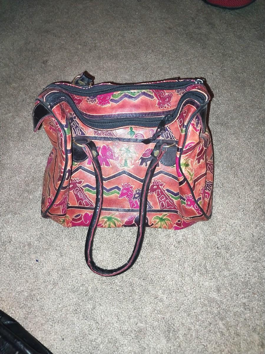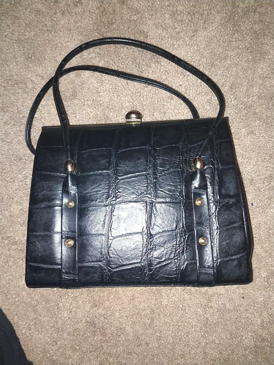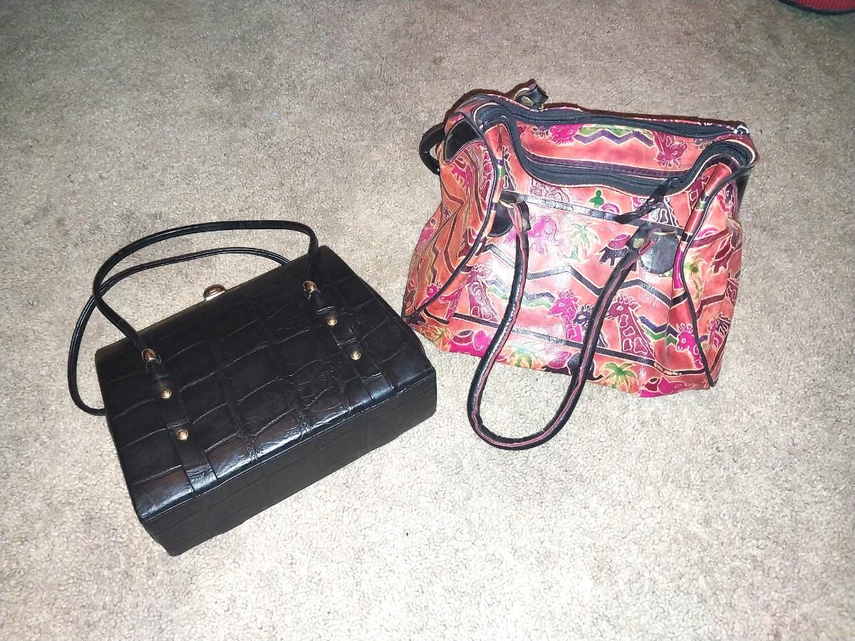BLACK CLUTCH WITH STRAPS AND LEATHER HANDBAG WITH UNIQUE DESIGN