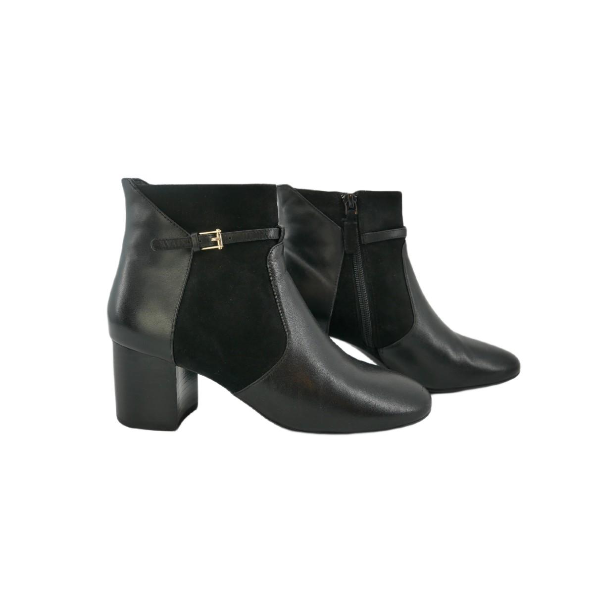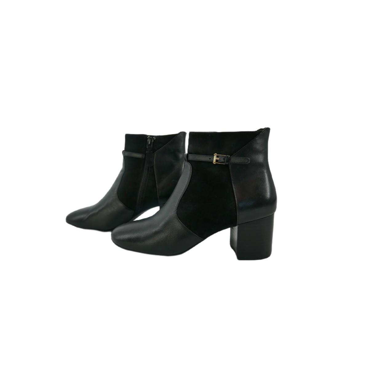 Black Cole Haan heeled ankle booties in style Paulina W08120. Women's size US 5.5 (5 1/2B). Heel is 2.25" in height. Gold buckle accents. In excellent condition! No original box. (F15)