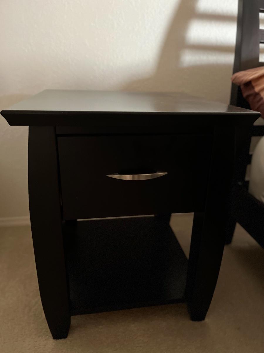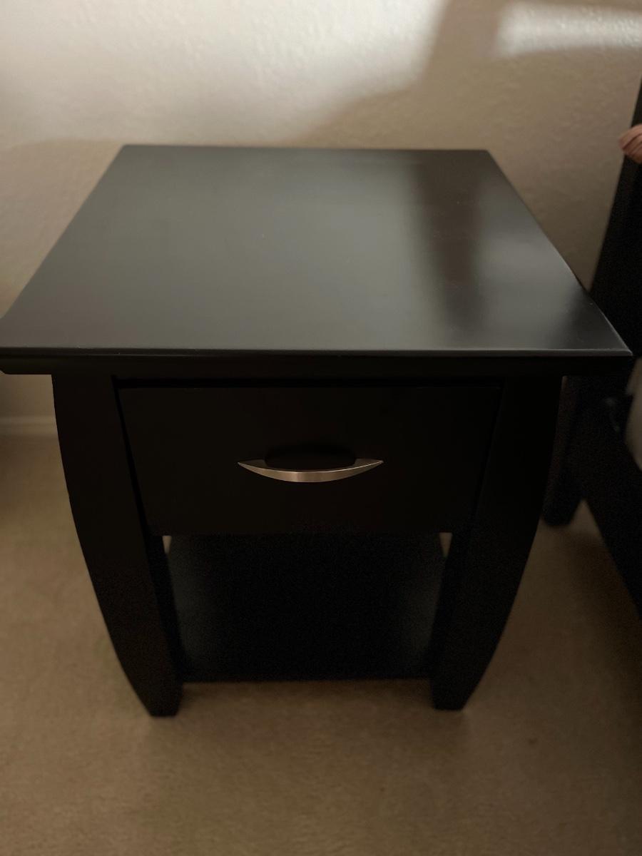 Black Wood Contemporary Night Stand 1 Drawer (21” L , 20.5” W, 25” H)