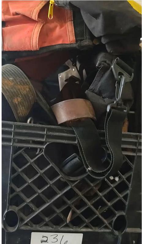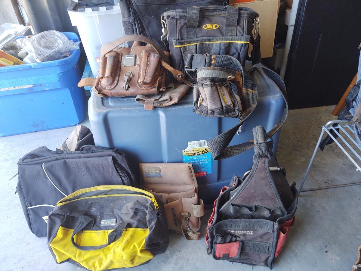 lot 236 -Assorted leather and fabric tool bags and belts, as shown in crate