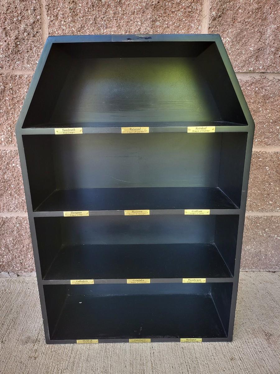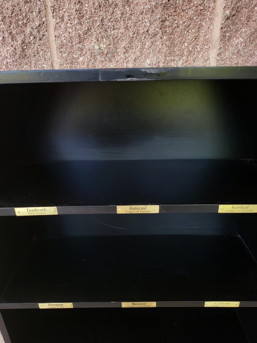 Fabulous Dragons curio display shelf by the Danbury Mint. Measures 17" wide x 25" tall x 6" deep. Shipping not available on this item.