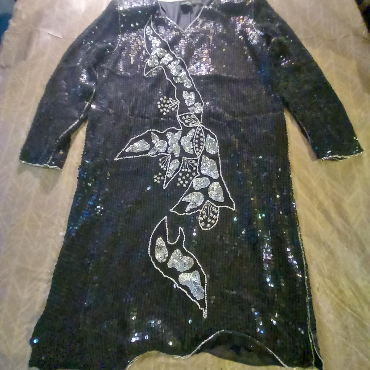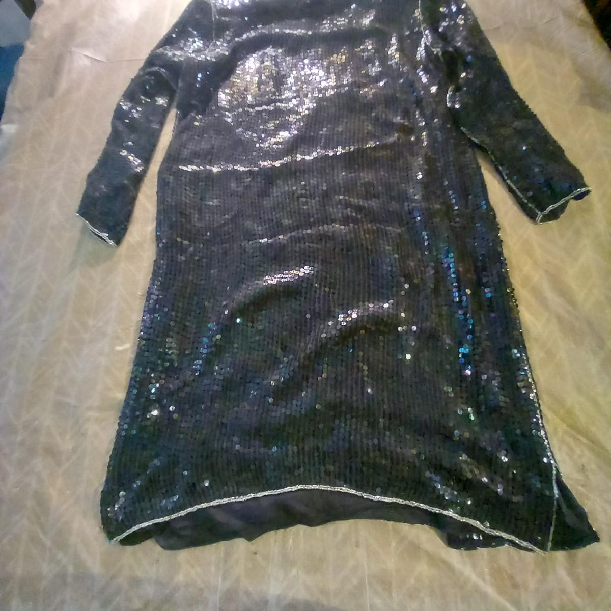This lot is for 1 Black / Dark multi Color Sequin Cocktail Dress By Jewel Queen Vintage