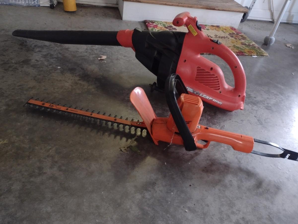Black & Decker 16" Battery Operated Hedge Trimmer and Leaf Blower with Battery and Charger
