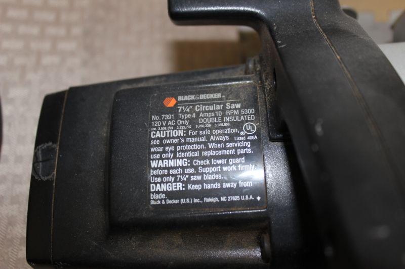 Black & Decker Circular Saw. 2 1/8 HP. Works. Does have signs of use.