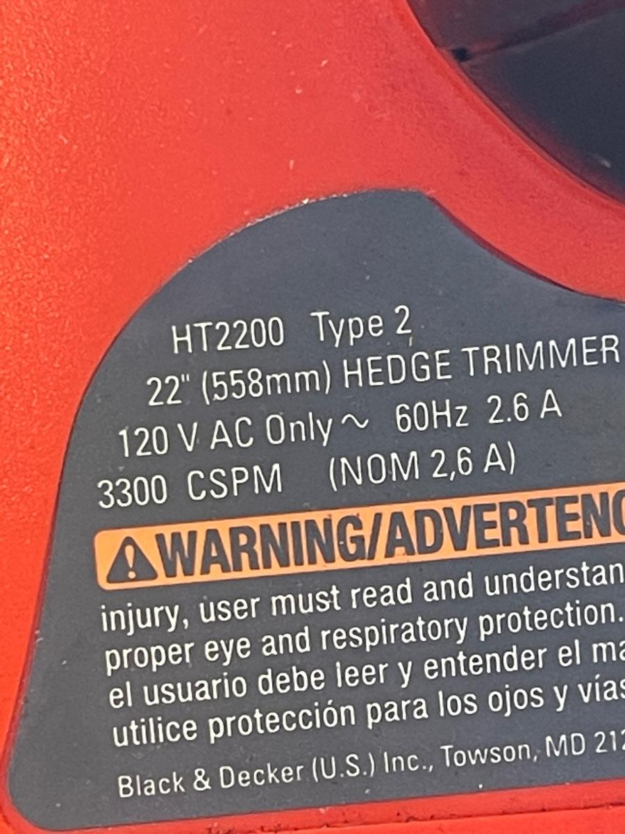 BLACK & DECKER ~ 22” Hedge Trimmer ~ Electric