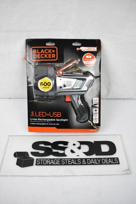 BLACK + DECKER 500 Lumen LED Rechargeable Spotlight (LIONLEDB), $33 Retail - New