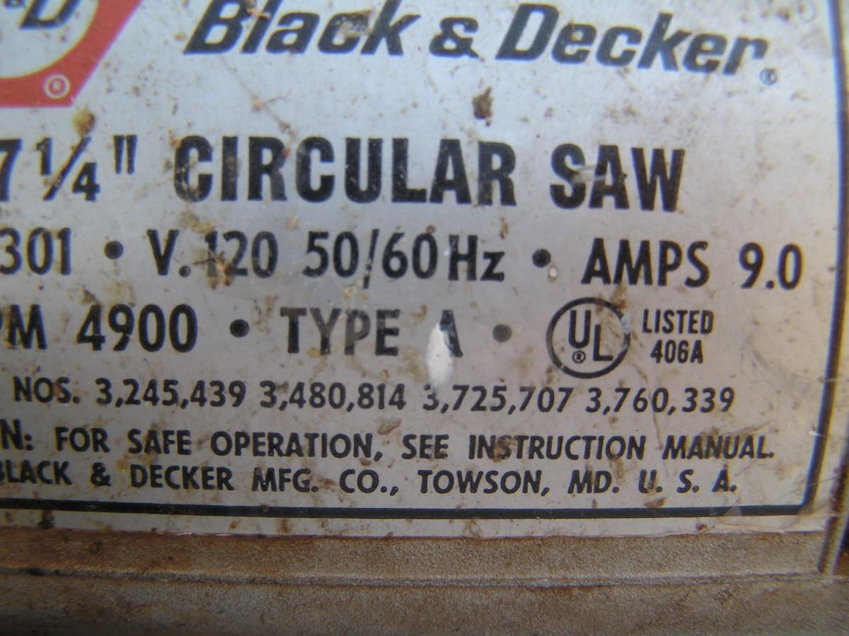 Black & Decker circular saw, ALL metal construction, 9.0 amp motor, run/sounds good