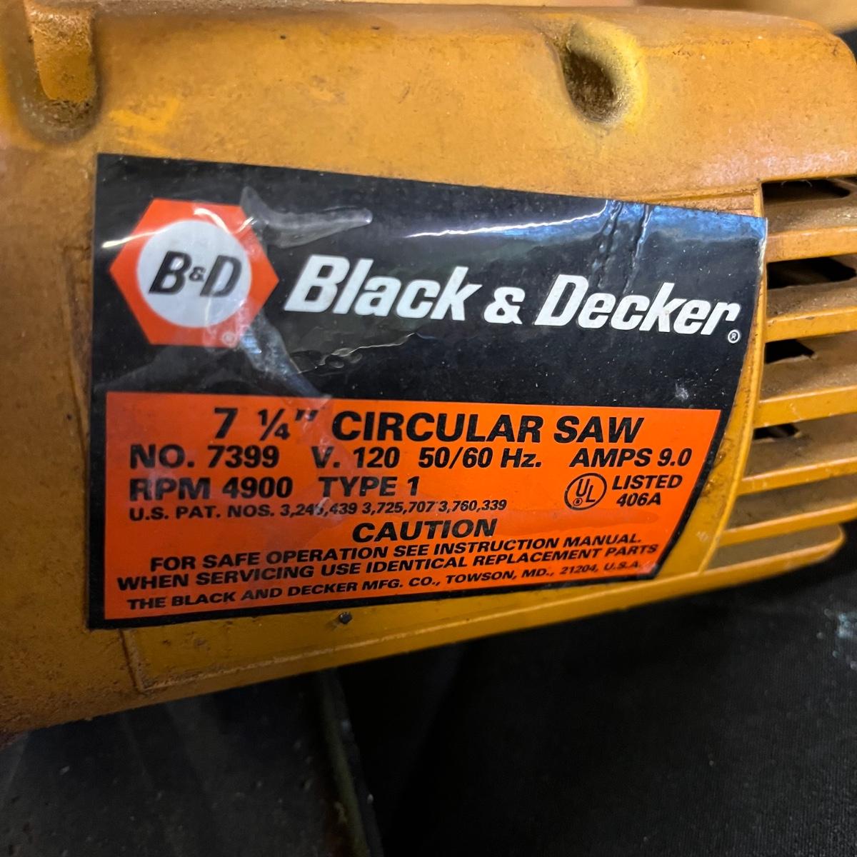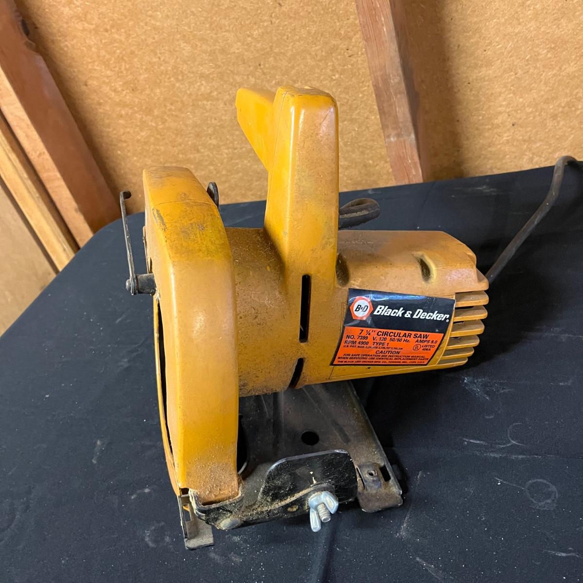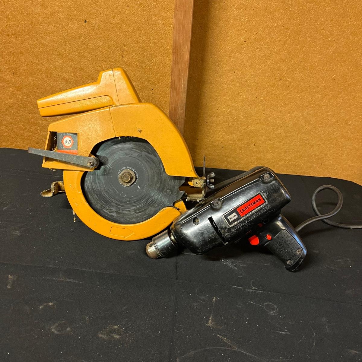 Lot includes a Black and Decker 7.25”circular saw model # 7399 and a Craftsman 3/8” electric drill model # 315.11441. Both items worked when tested.