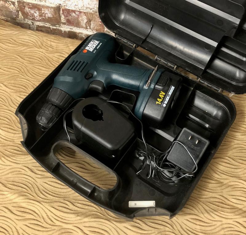 With a carrying case here is a Cordless Drill from Black & Decker..Good working condition...with battery and charger...