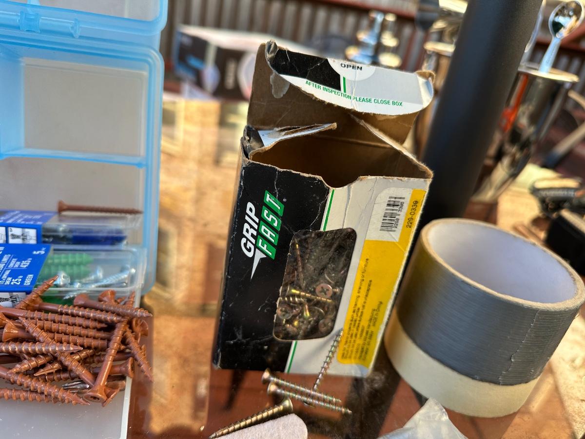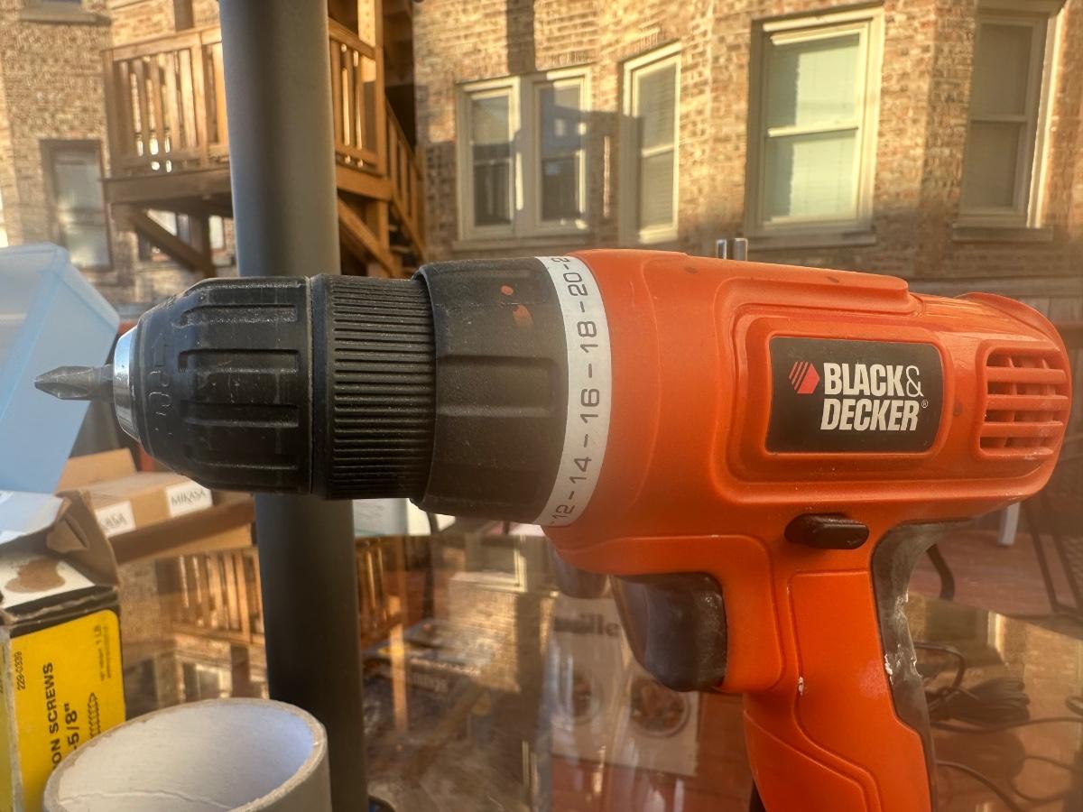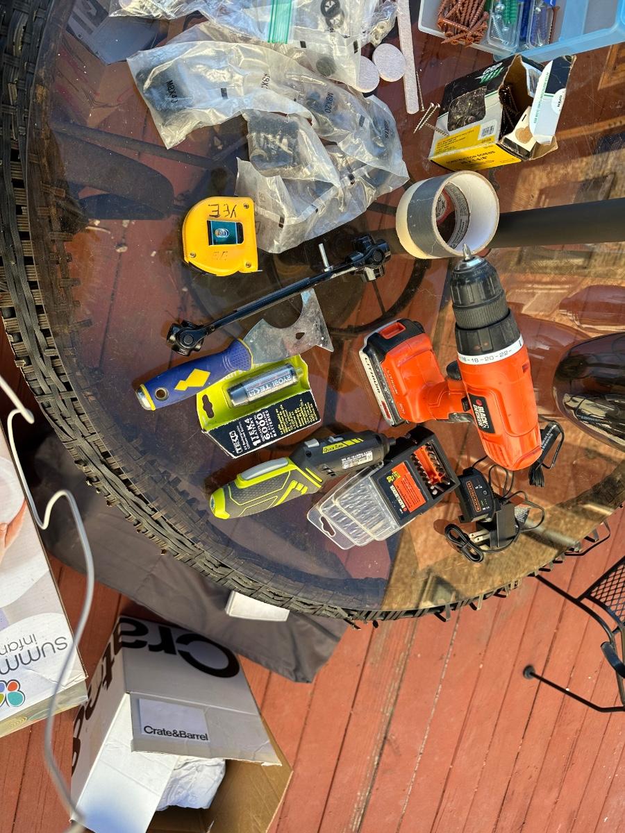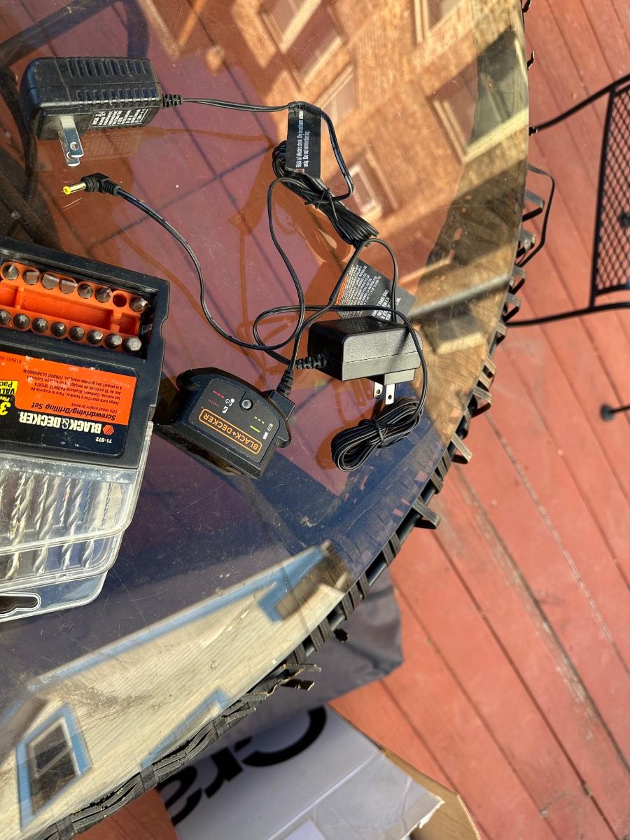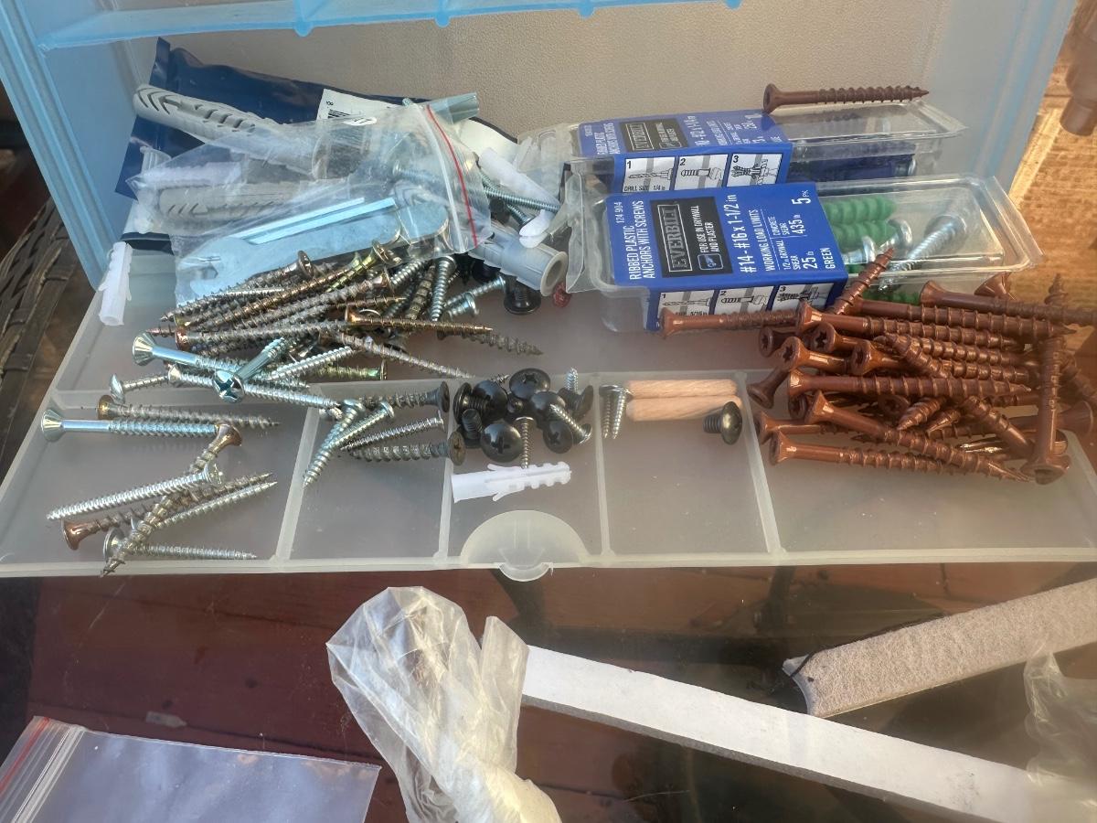 Cordless drill with bag and tons of accessories and screws for all needs.