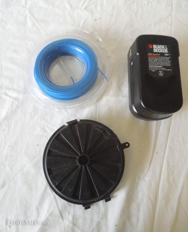 This lot includes battery (not sure if chargeable) and line. Underside needs cleaning. Housing in great shape.