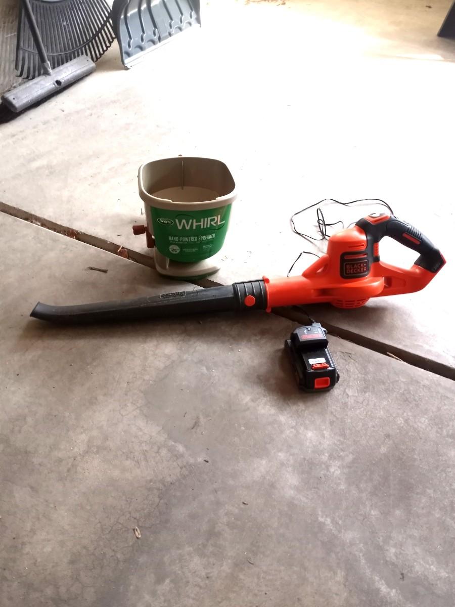 BLACK & DECKER CORDLESS LEAF BLOWER AND HAND SPREADER