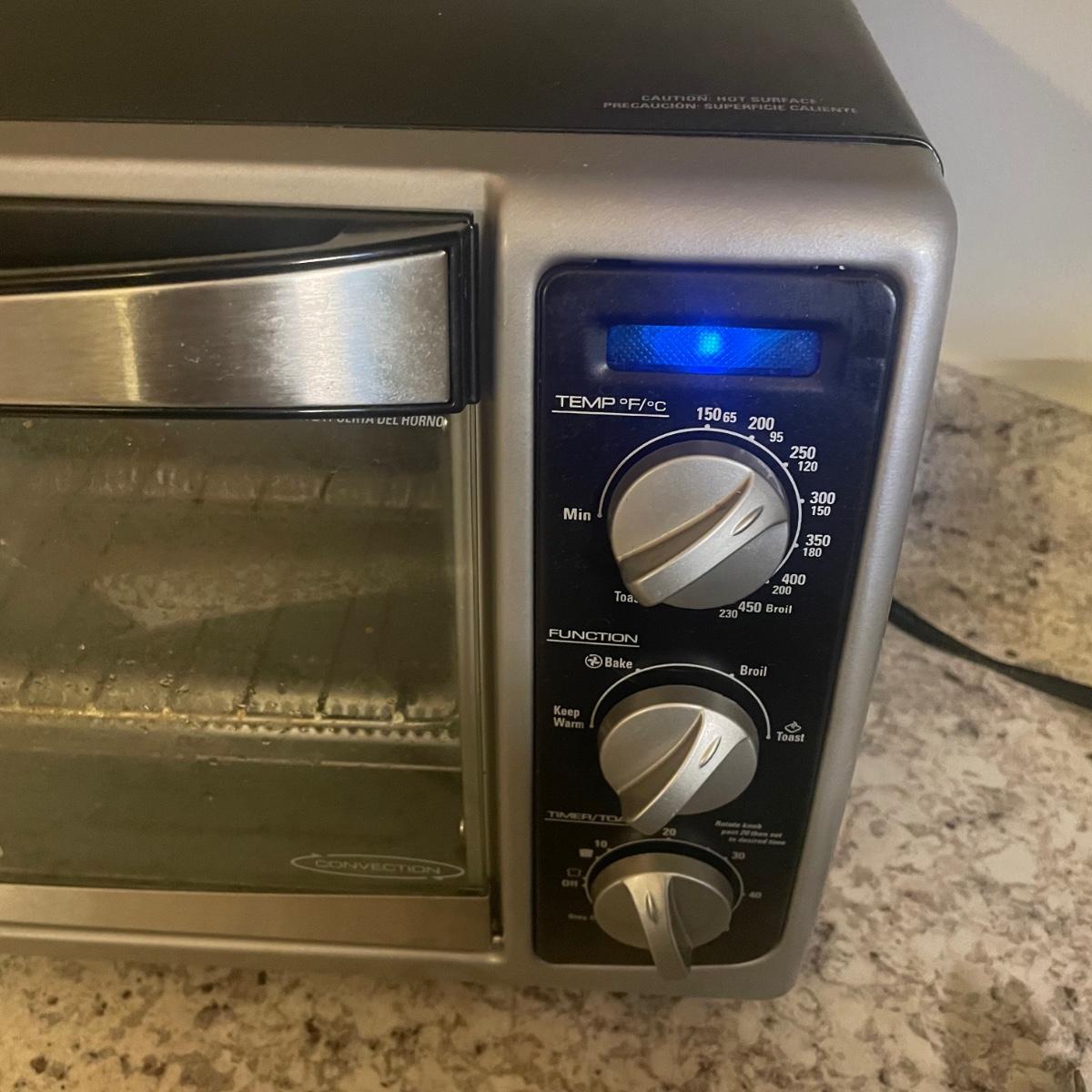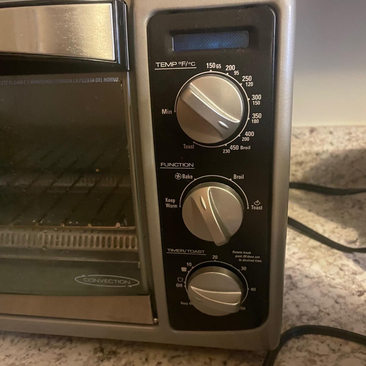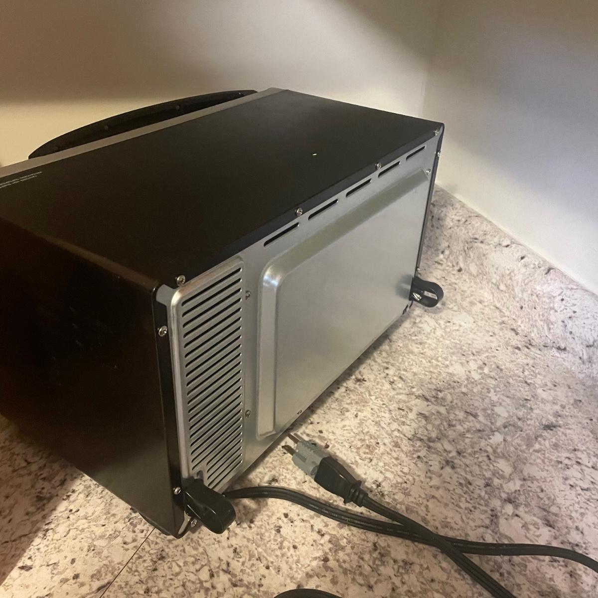 The convection oven and electric can opener both worked when tested, the waffle baker is new in box. The used items are in good condition. The oven measures 16” x 10” x 10”.
