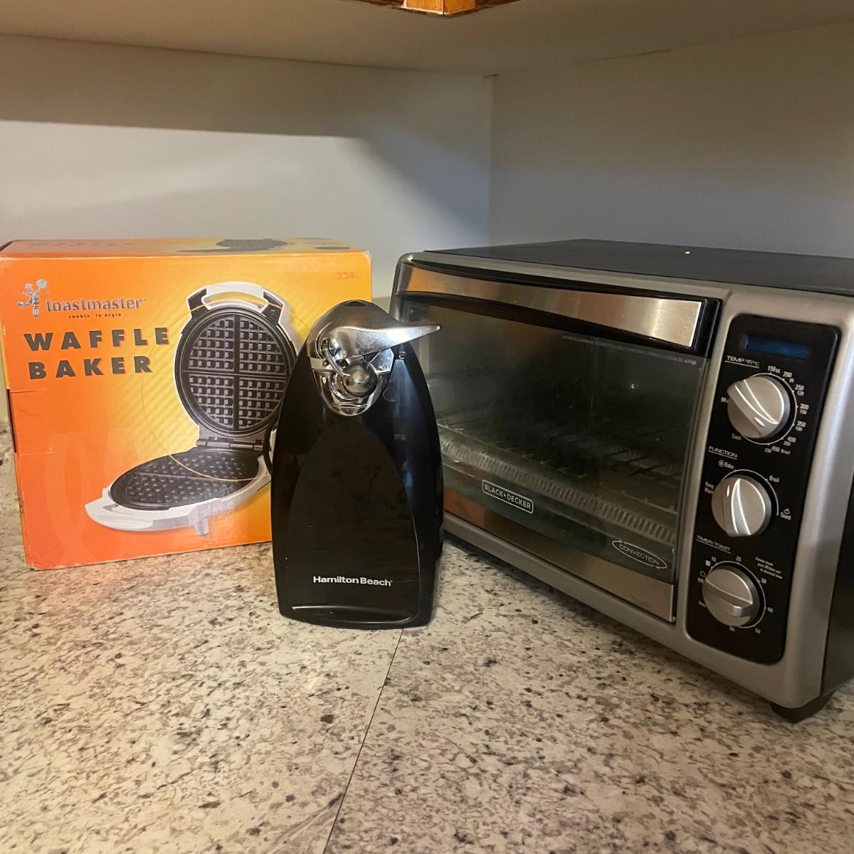 Black + Decker Countertop Oven, NIB Waffle Baker & Hamilton Beach Electric Can Opener (K-RG)