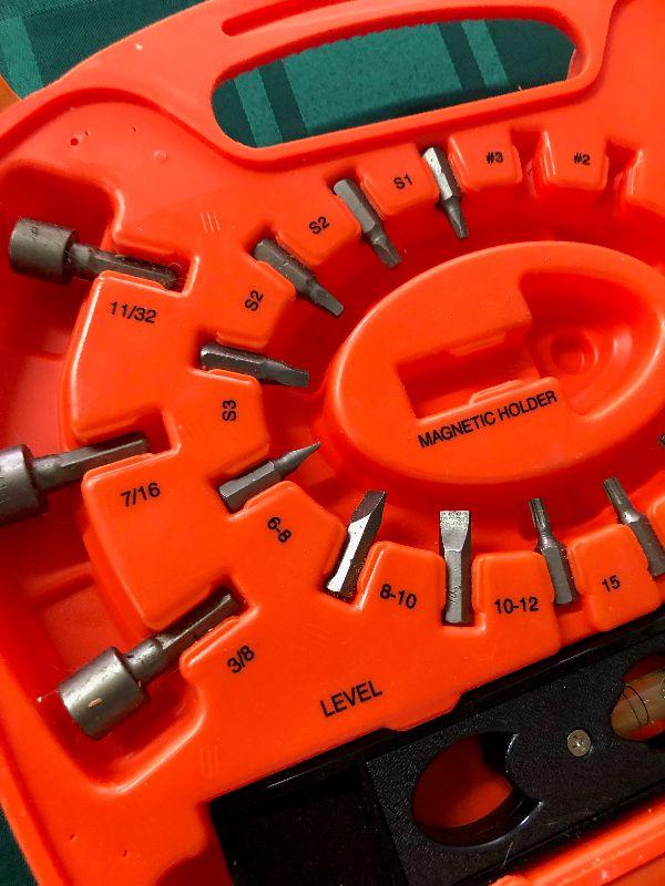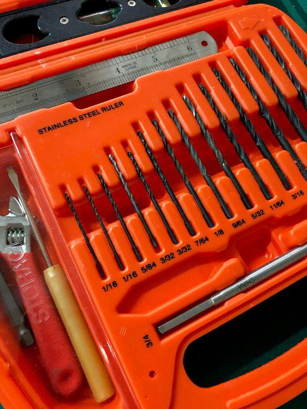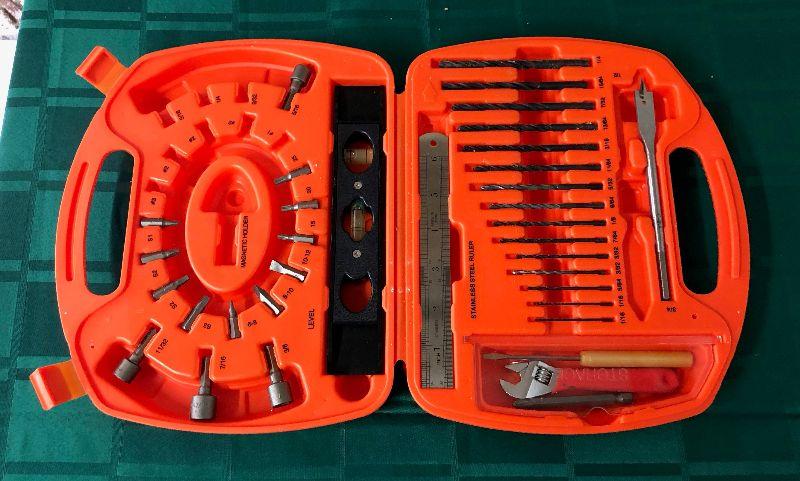 A few pieces missing on this mostly complete drill bit set in plastic case from Black & Decker...as shown...