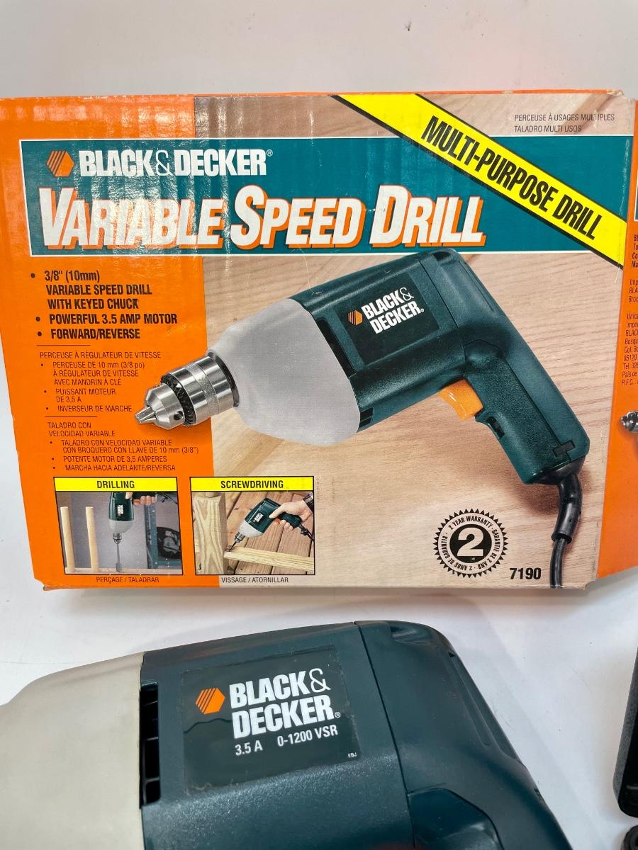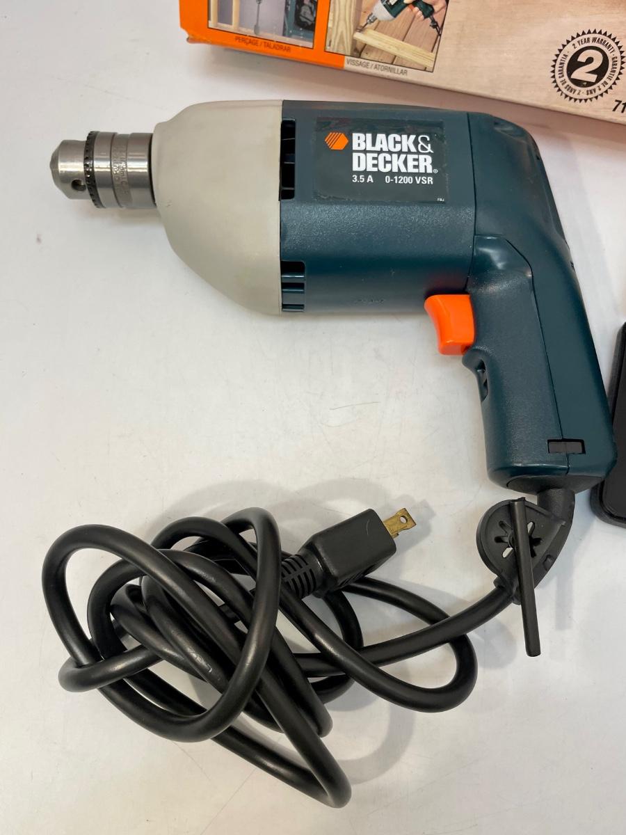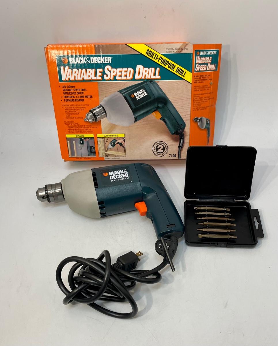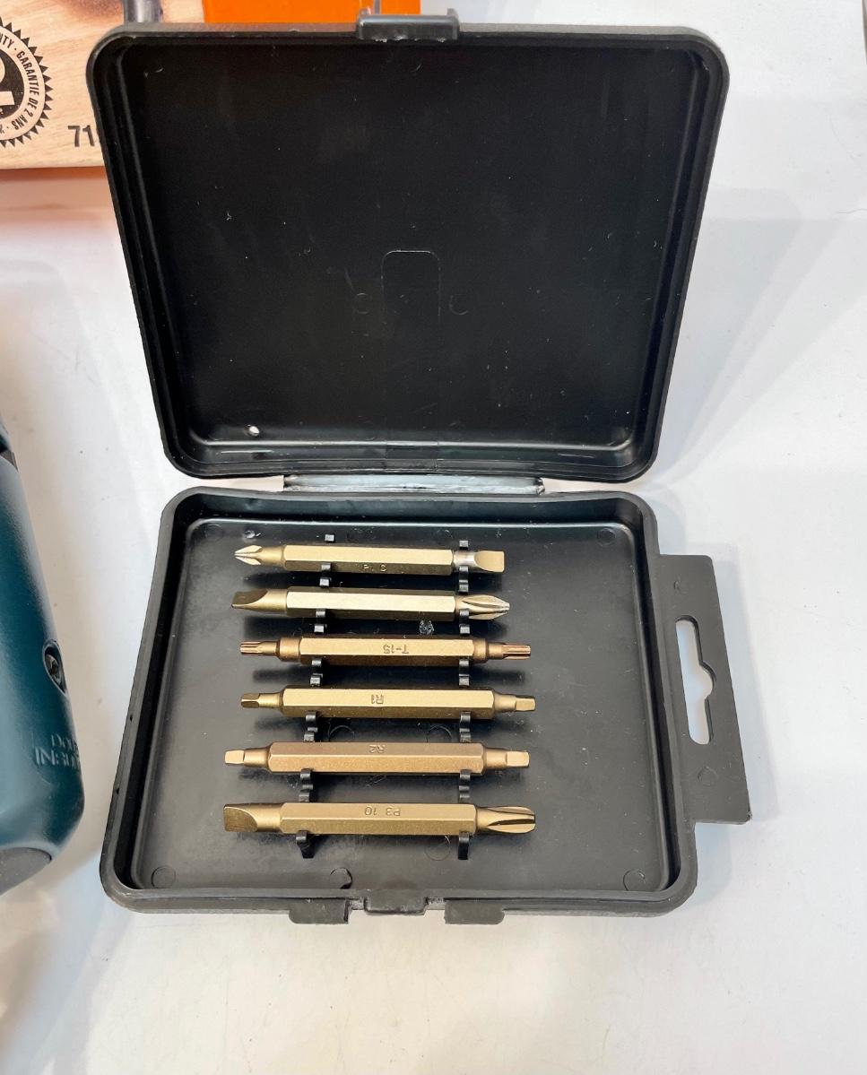 Near new condition, no scratches or scuffs. Includes chuck key and set of 6 bits (torx, allen key, and screwdrivers). Fully tested, works well.