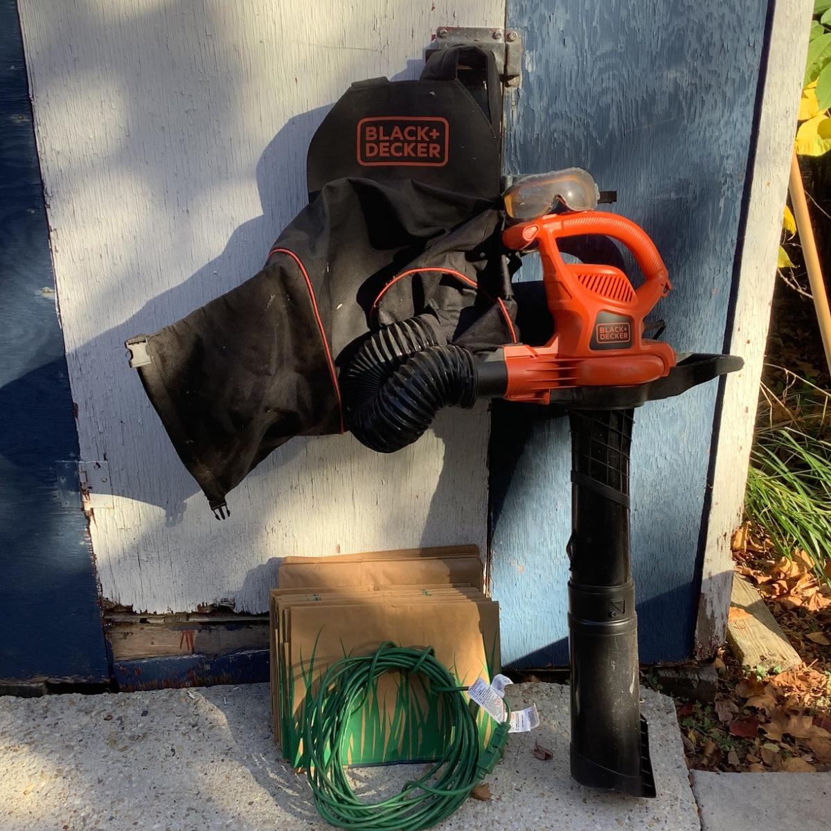 With bag and extension cord, includes leaf bags (Model: BEBL 7000)