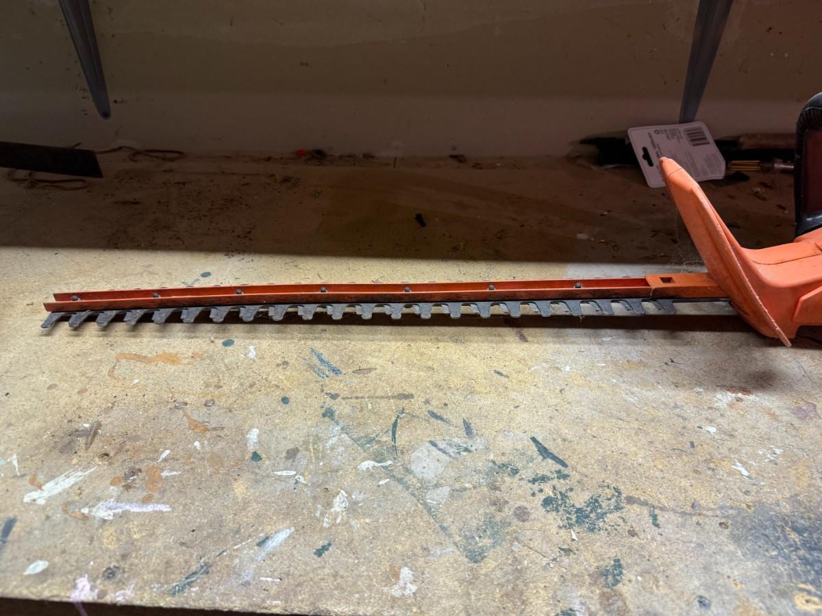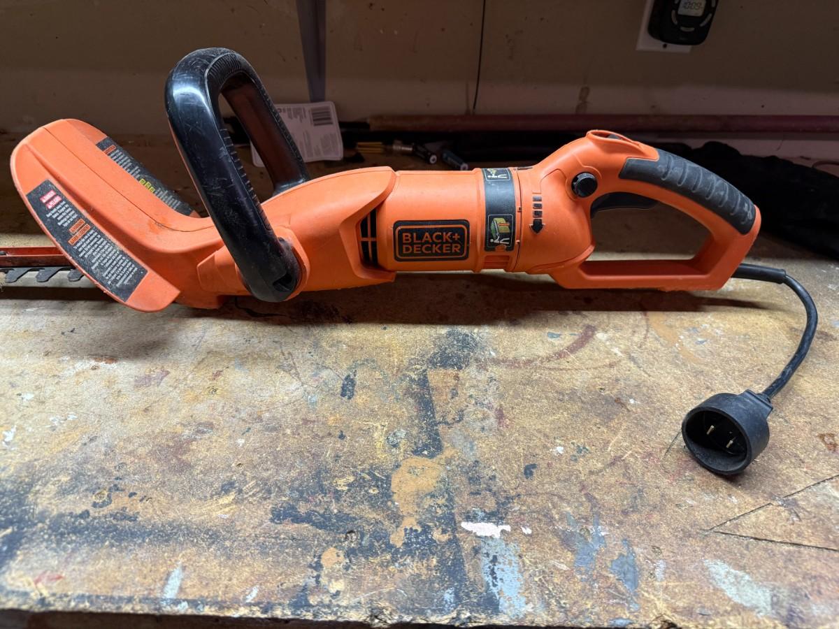 Reliable corded Black + Decker electric hedge trimmer. Lightweight and efficient for yard maintenance.