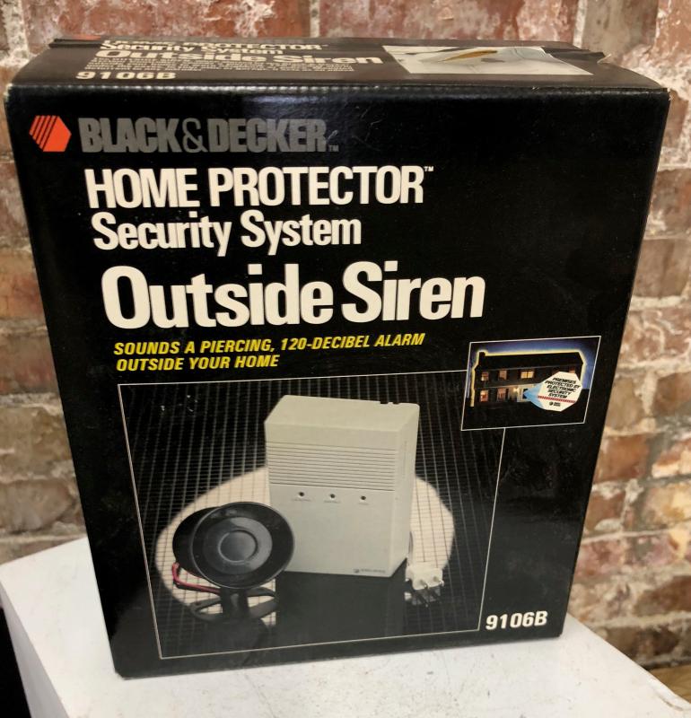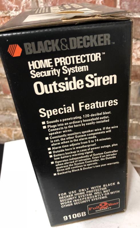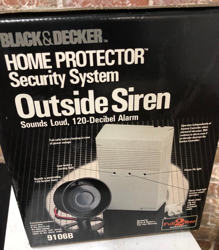 New in the box here is a BLACK & DECKER HOME PROTECTOR SECURITY SYSTEM OUTSIDE SIREN...