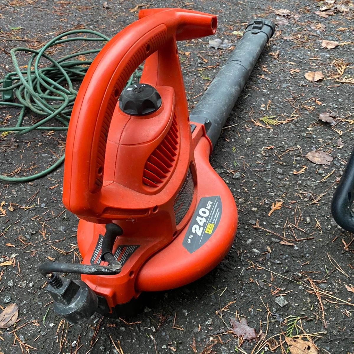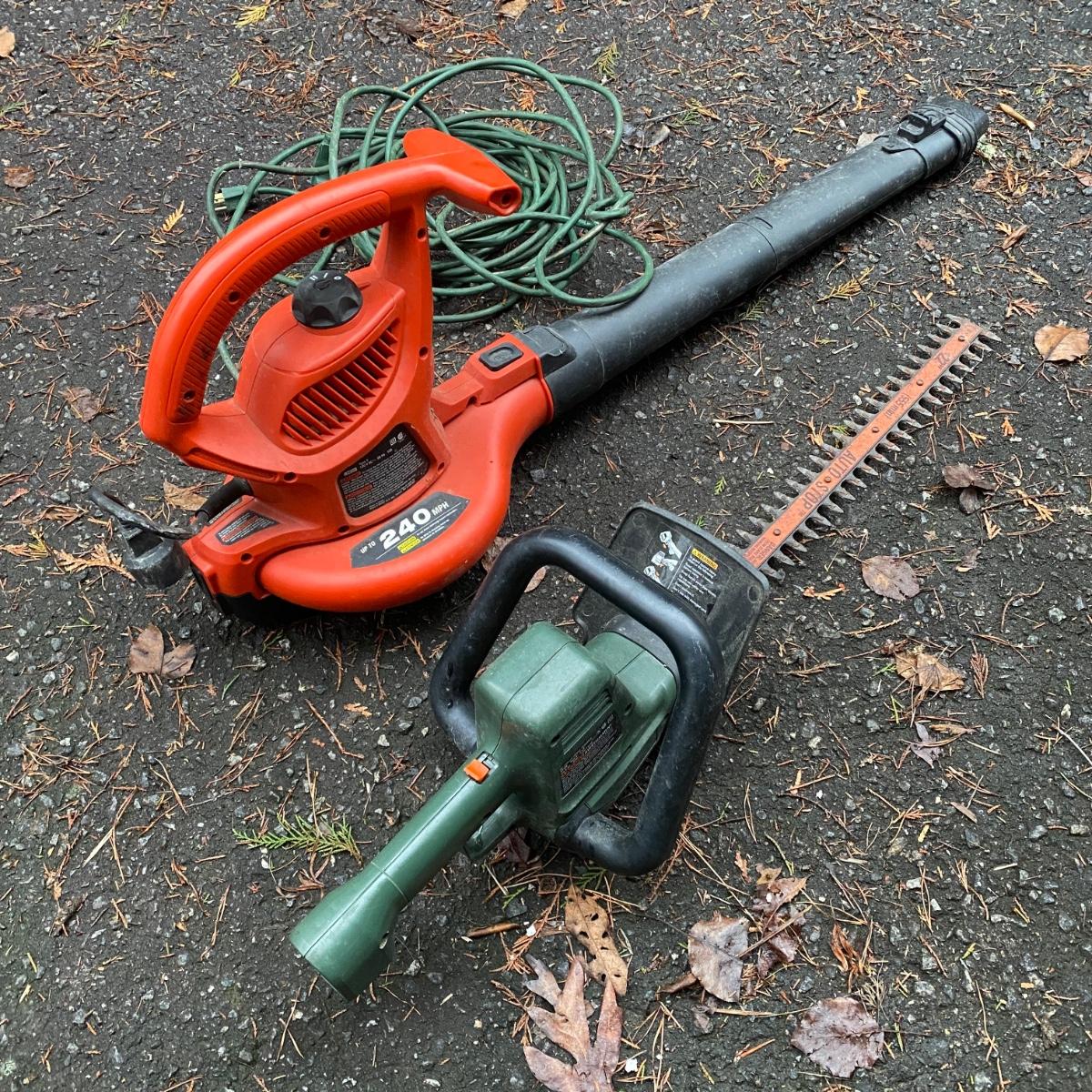 Electric Black and Decker leaf blower and trimmer. One cord included that fits both. Both turn on. Blower had some sparks that may need some tuning up but it worked. Local pick up.