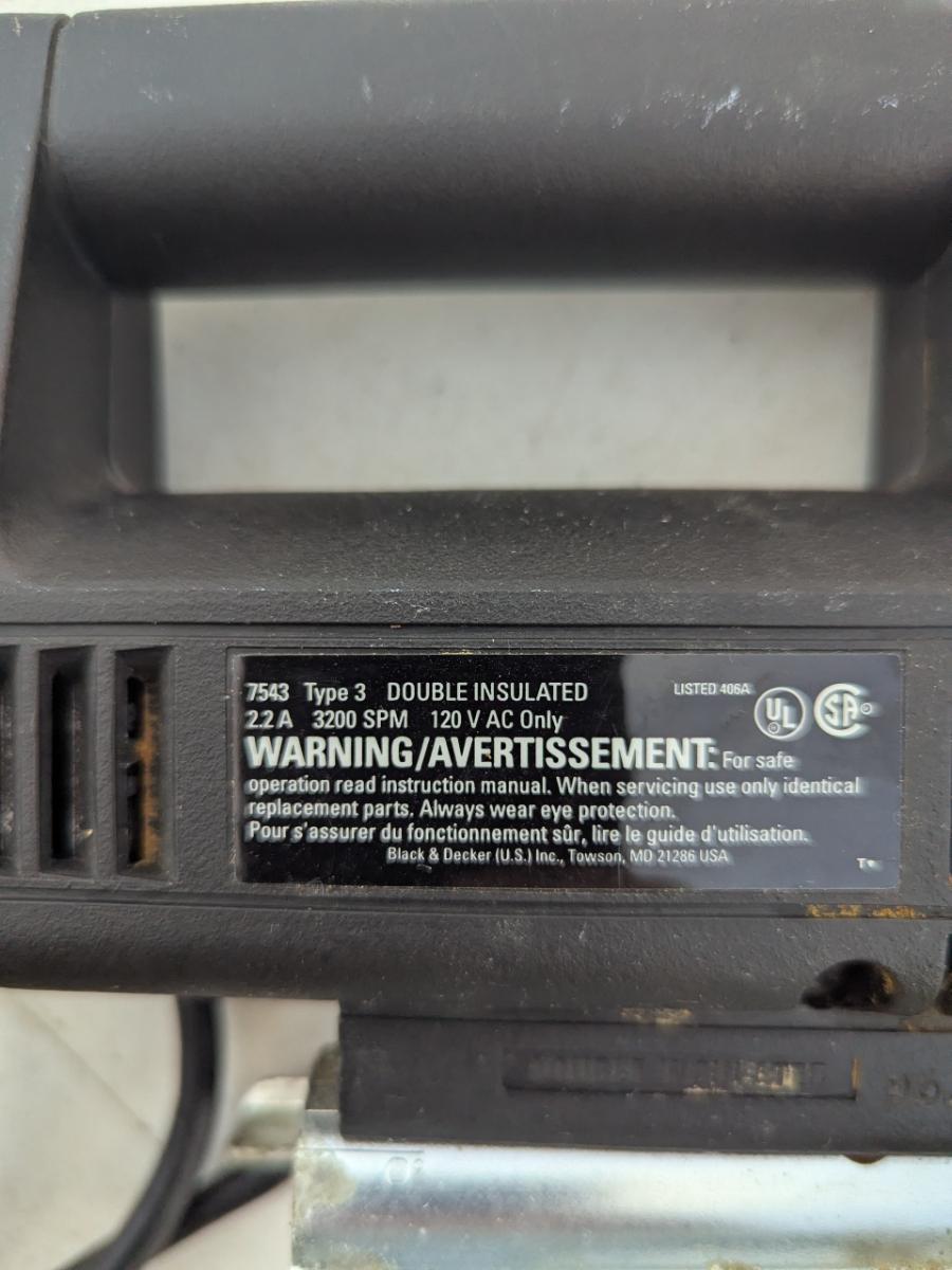 Black & Decker Model 7543 single-speed corded jigsaw tested and working