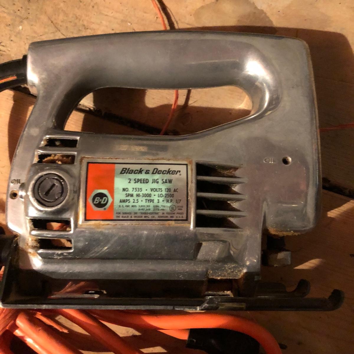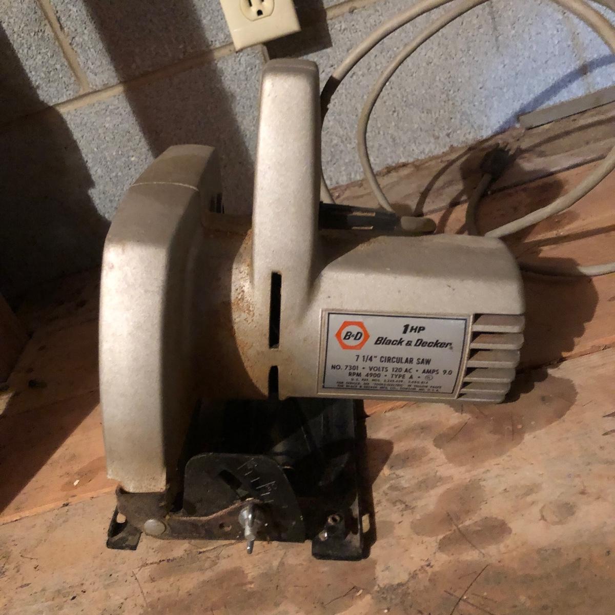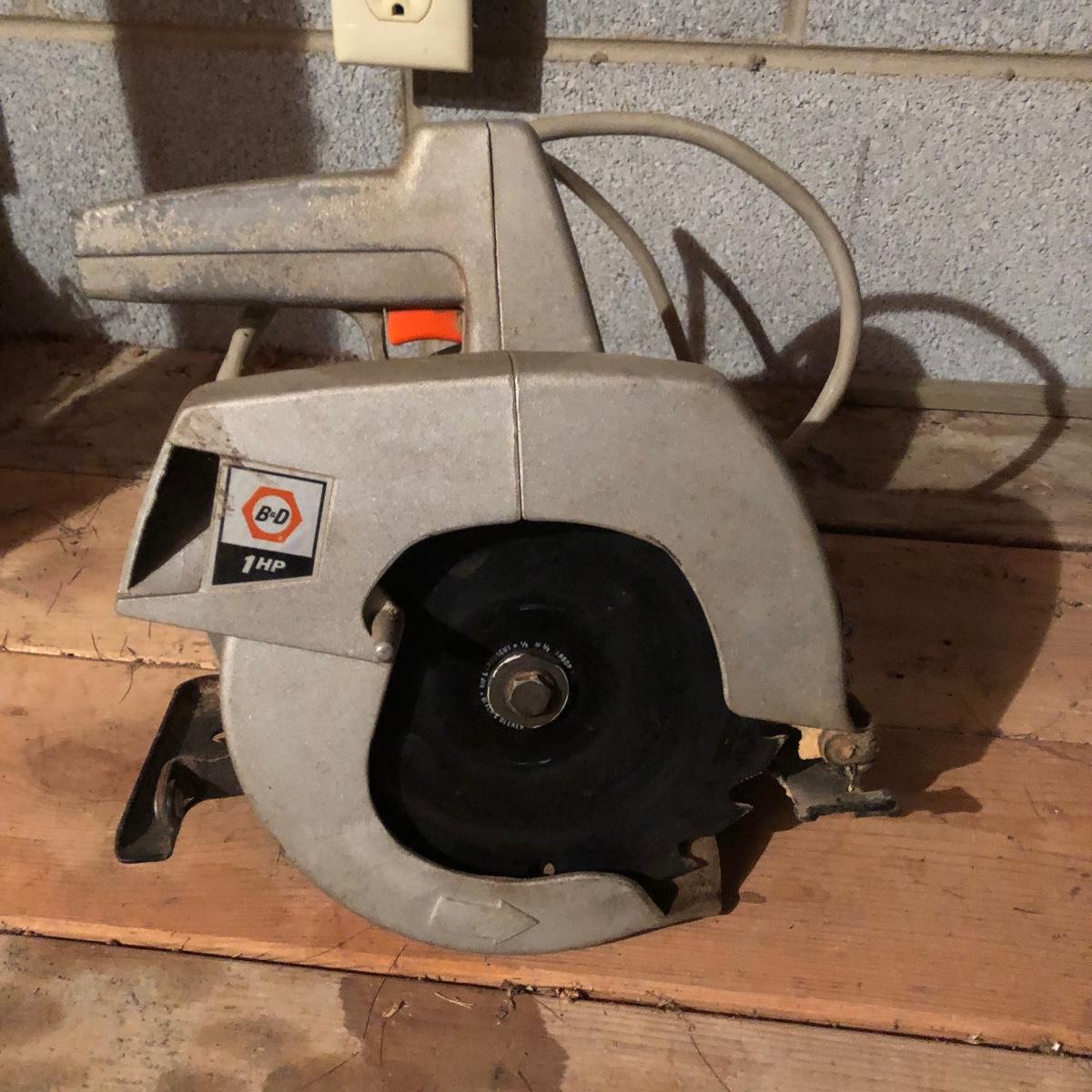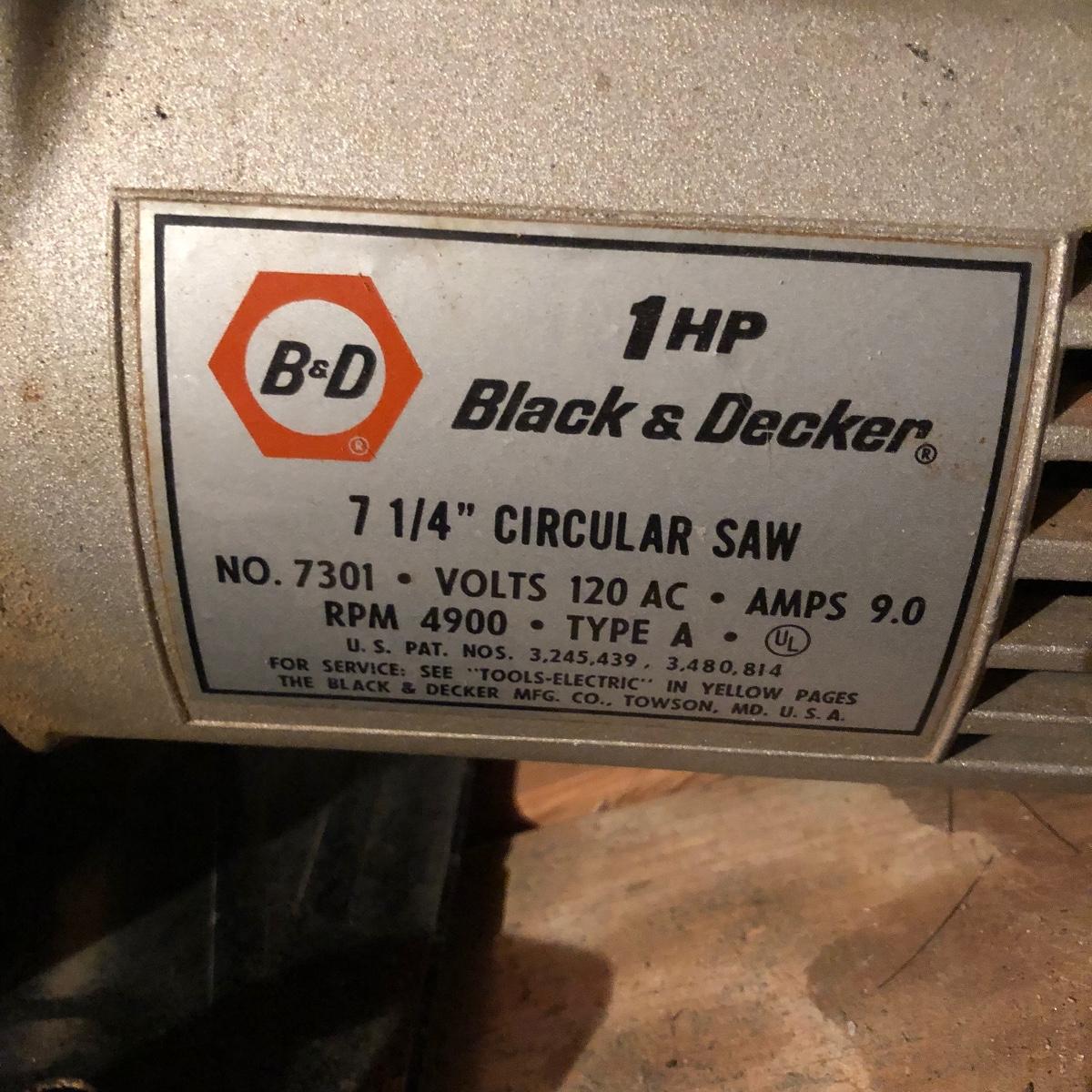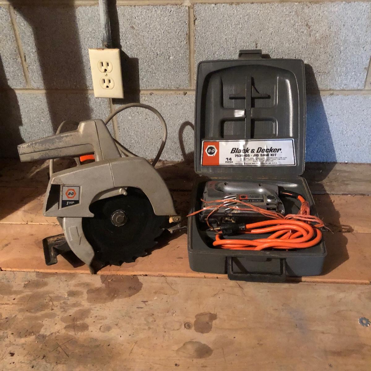 Lot includes a Black and Decker jig saw kit model # 7535-05 and a Black and Decker 1 HP 7 1/4 circular saw model # 7301. Both saws worked when tested.