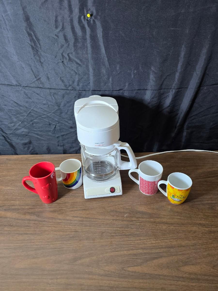 Black & Decker versa brew coffee maker with a couple coffee mugs