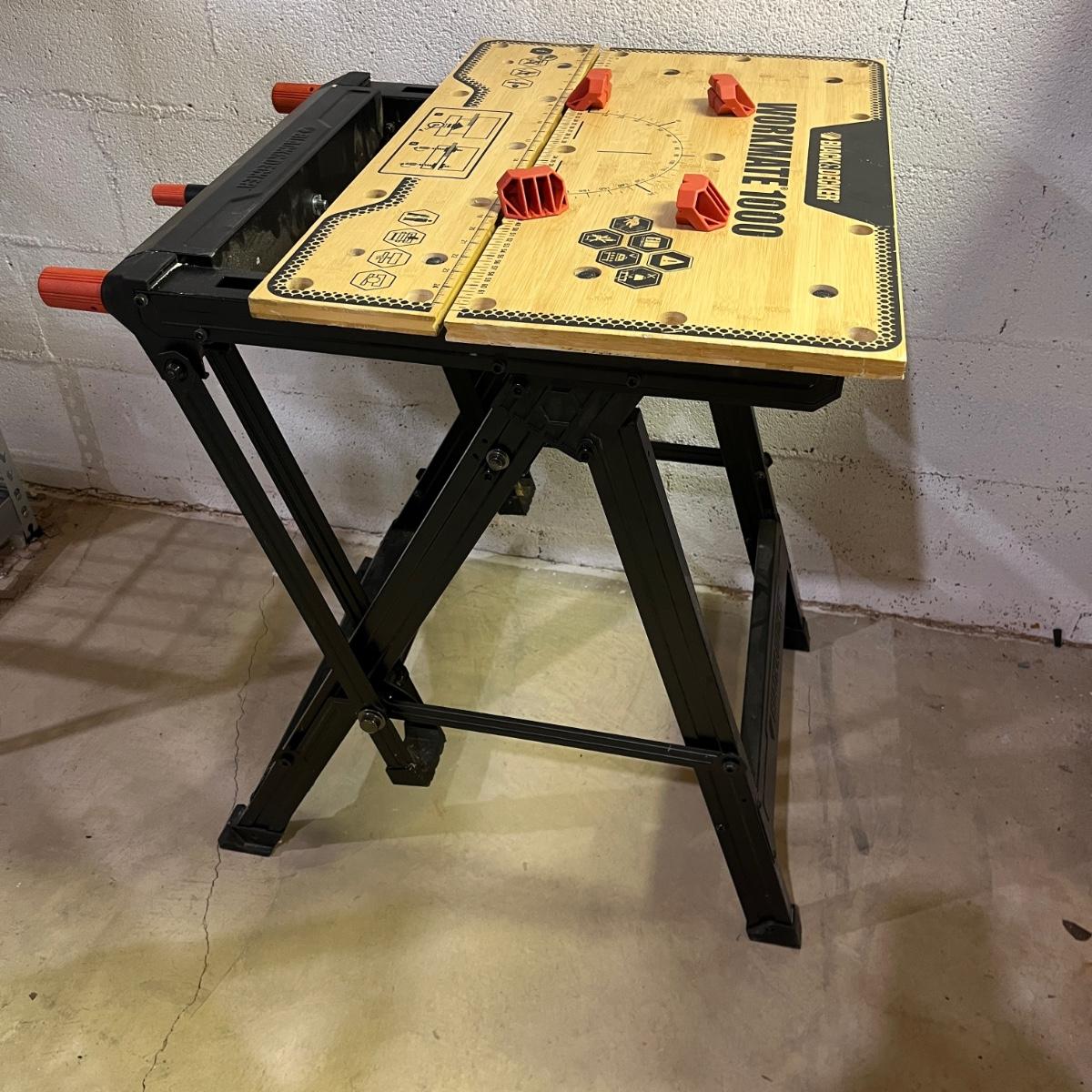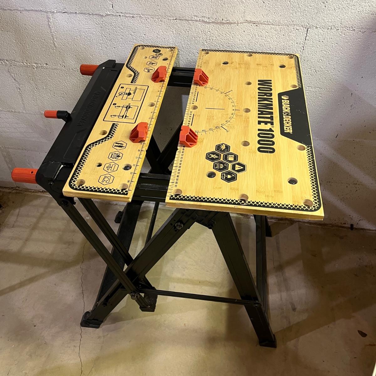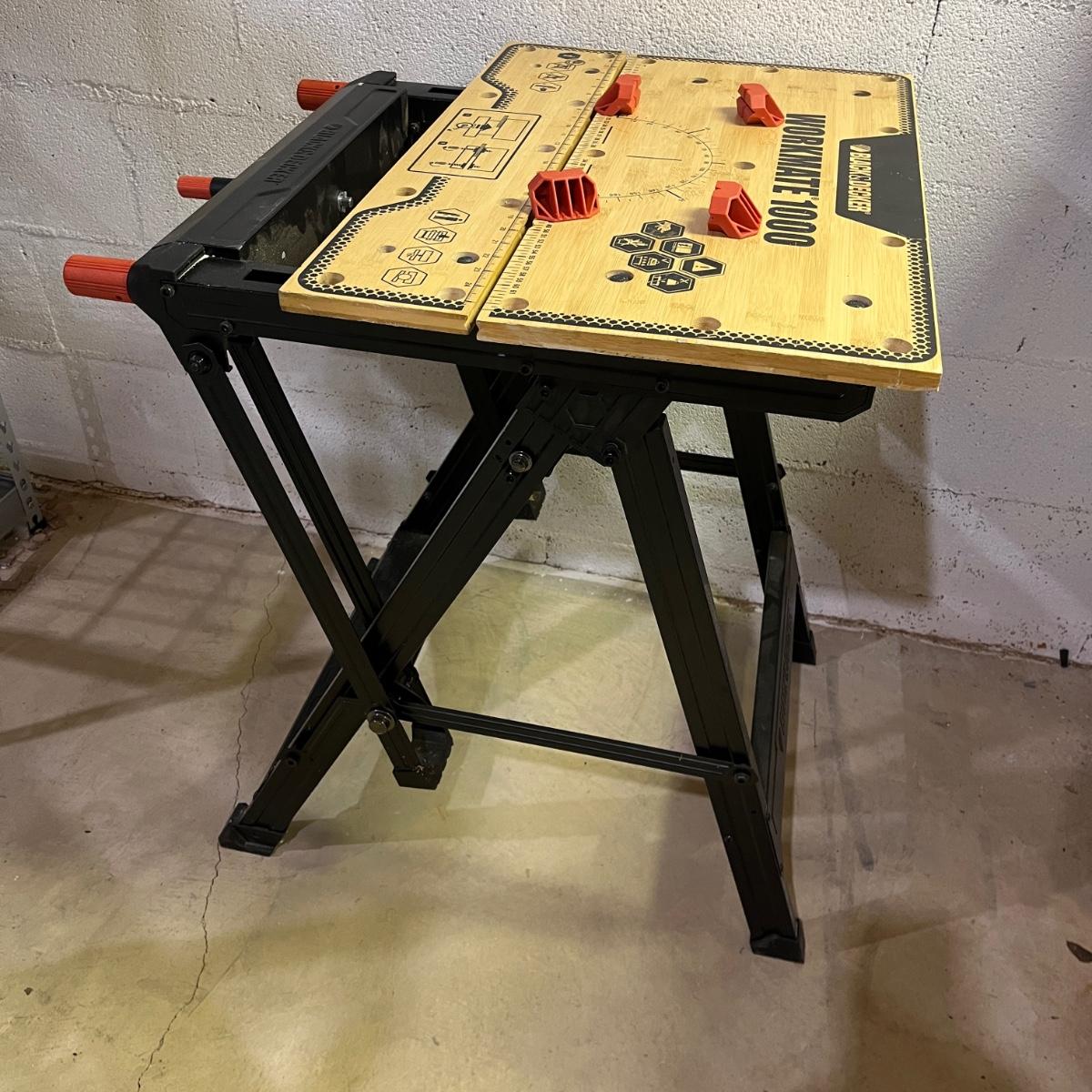Lot includes a folding Black & Decker Workmate 1000 that measures 27" x 26" x 31.5"H when open.