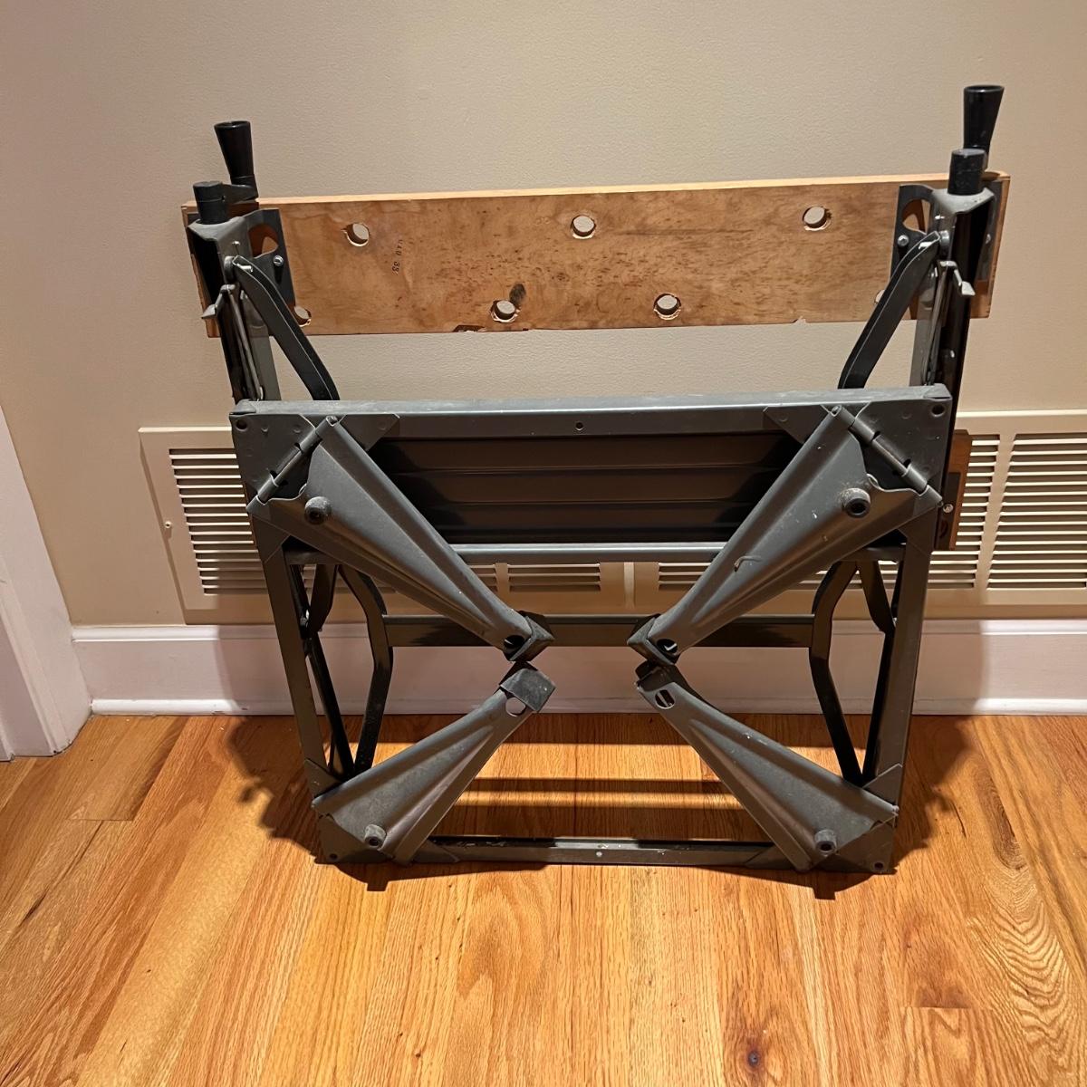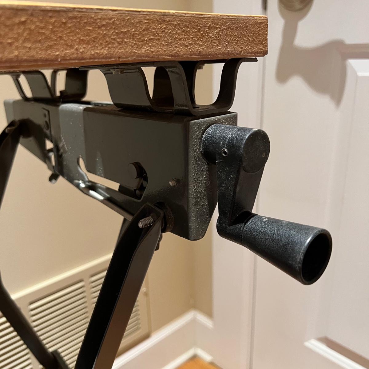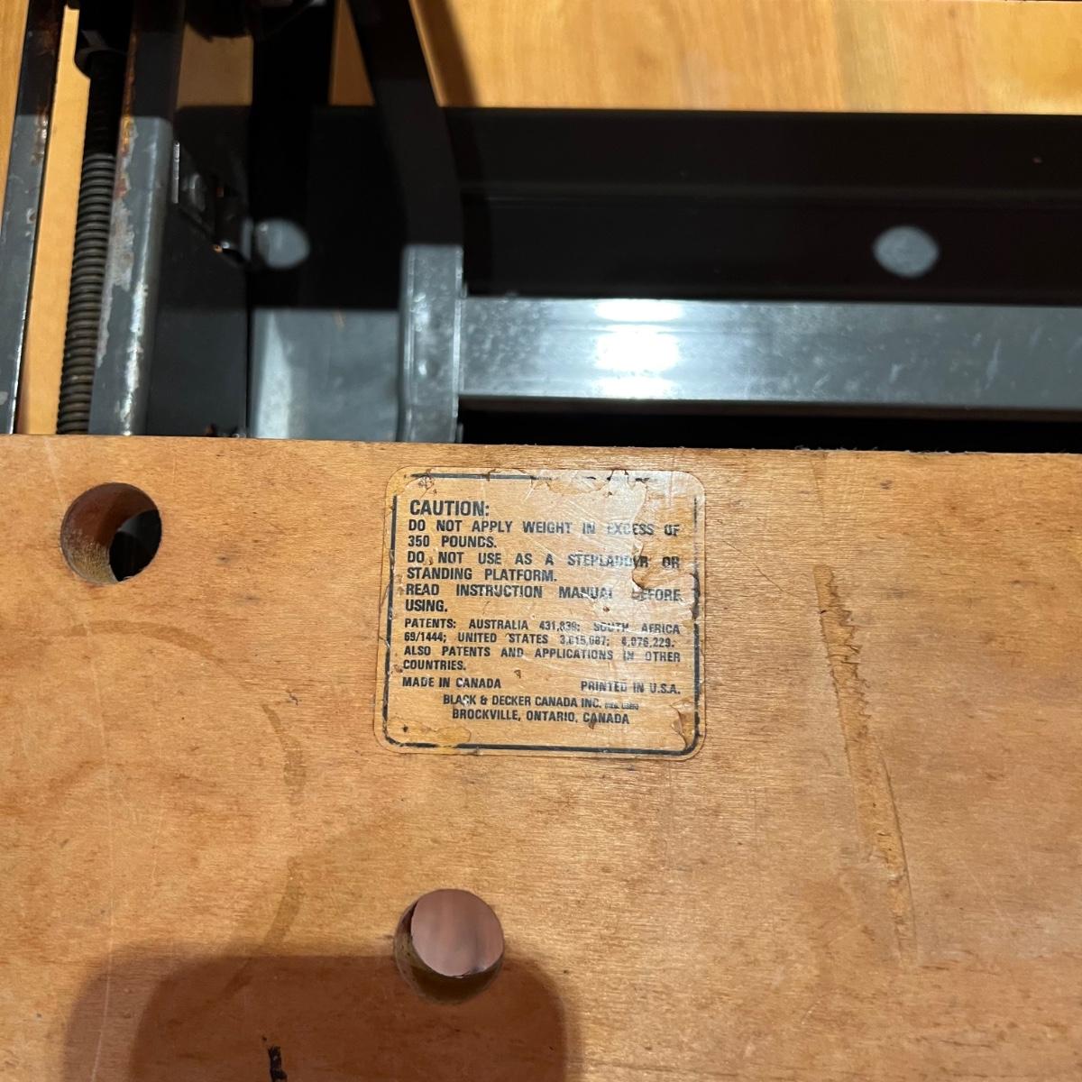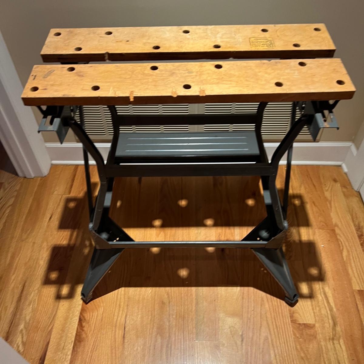Black & Decker portable work center and vise dual 29” model. Table is collapsible (as shown) and has two vice cranks for holding your project in place. This workbench has been well used but seems to be as capable as if it were new. Very sturdy and portable. Local pick up only.