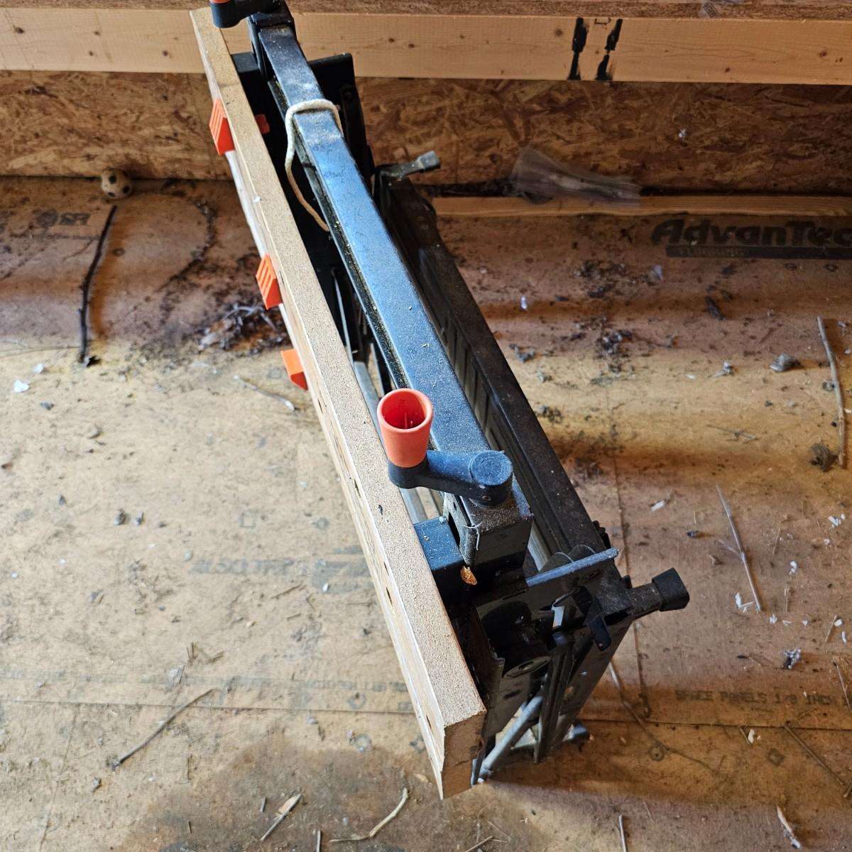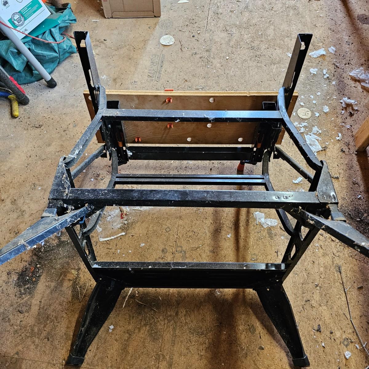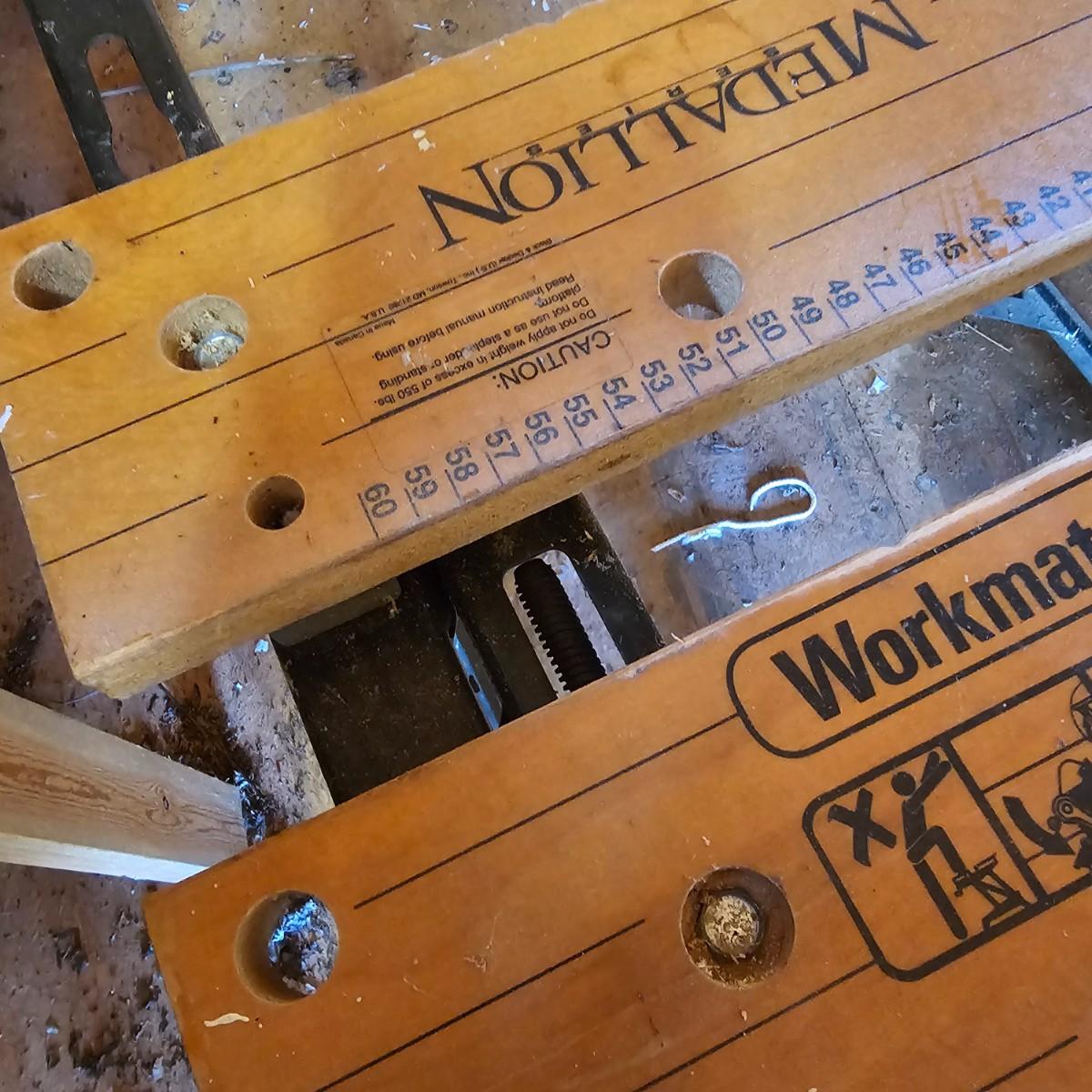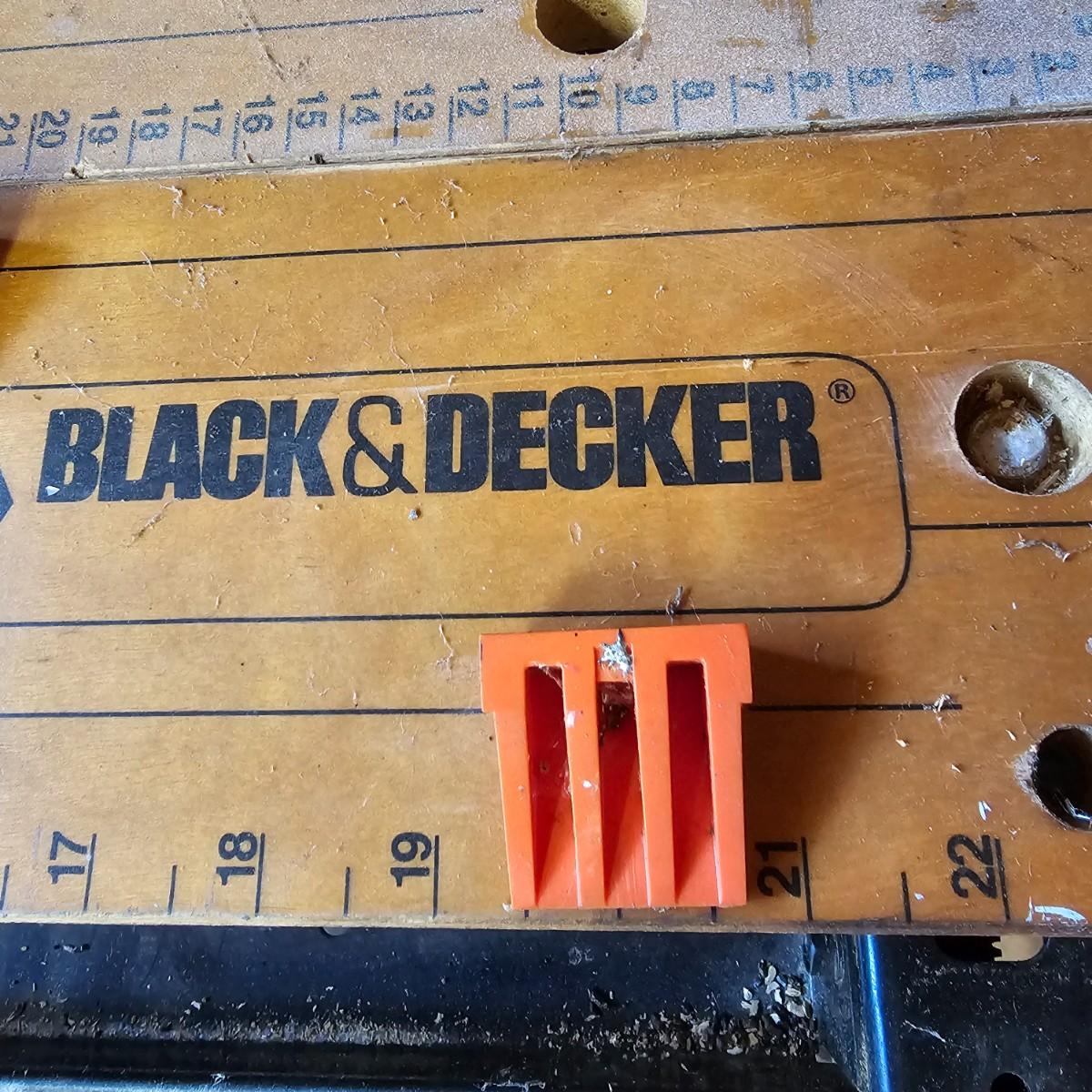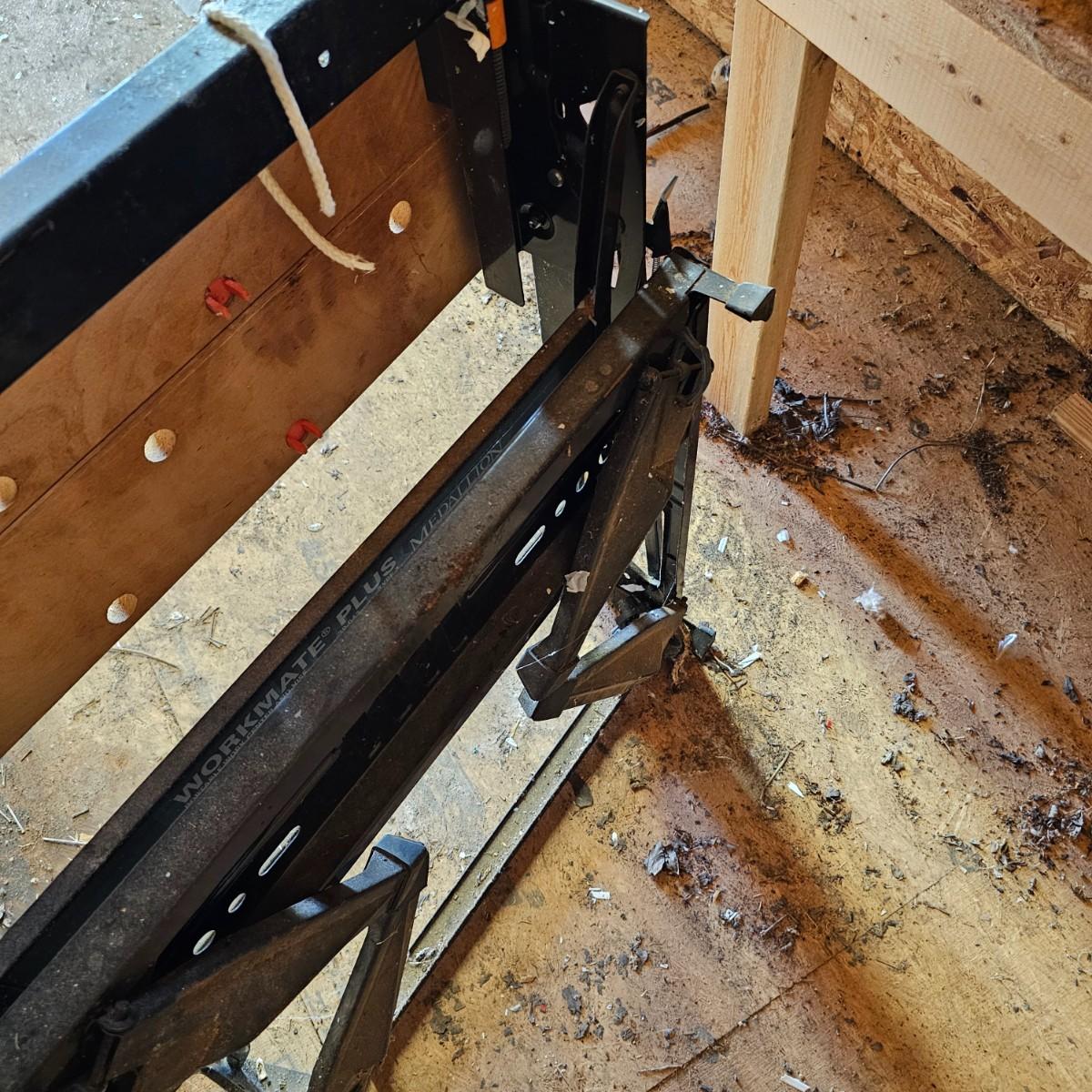 Portable work center and vise, the Black & Decker Workmate Plus goes where you need it to for any job. Sturdy step, wooden work surface with hold downs and an adjustable vice. Folds flat for easy storage and transport. Unit measures 28" x 29" x 31"H. Folding legs stay open, may not stay closed. See photos for details. Local pickup only.