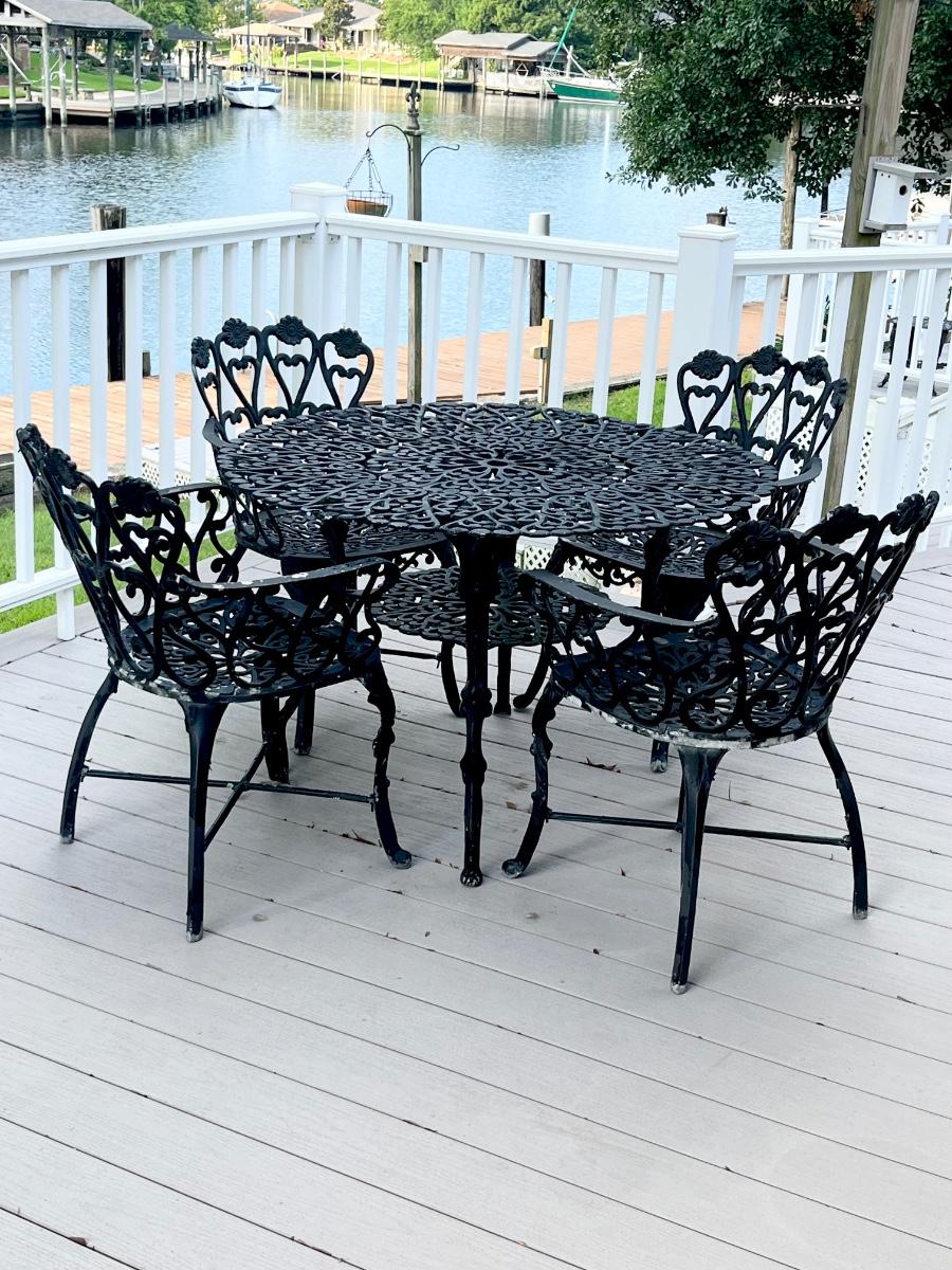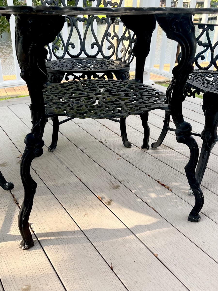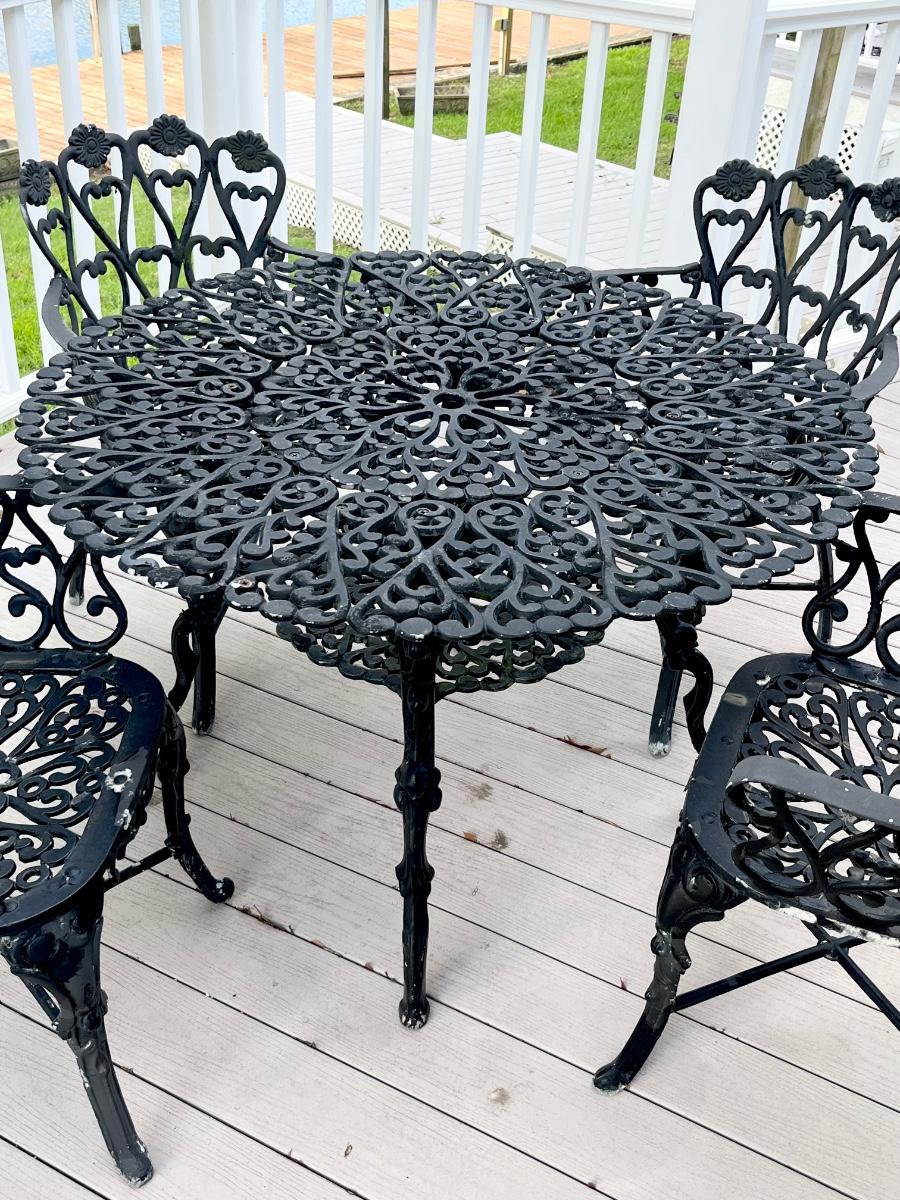 Black Floral Cast Aluminum Outdoor Five (5) Piece Table Set
