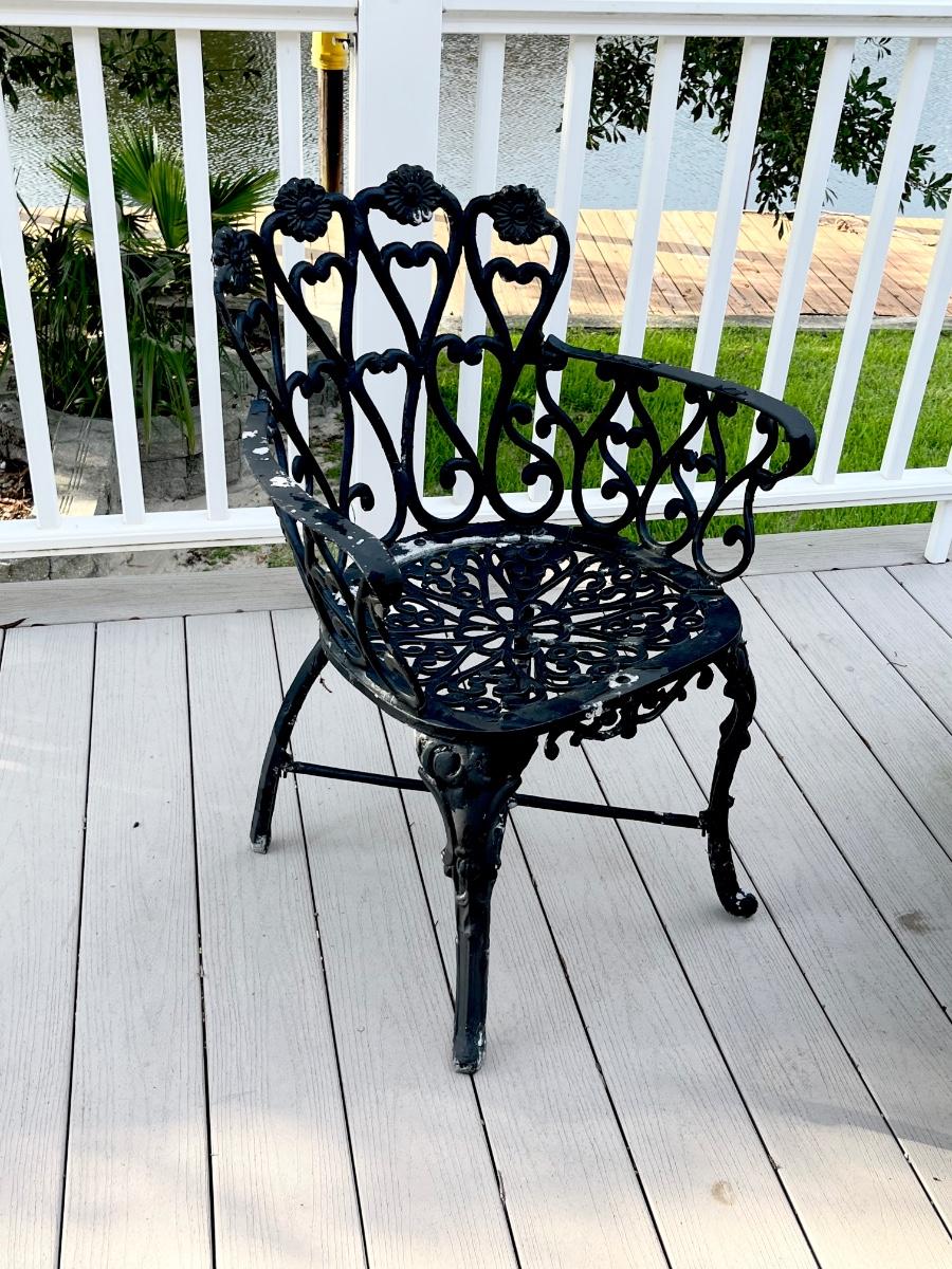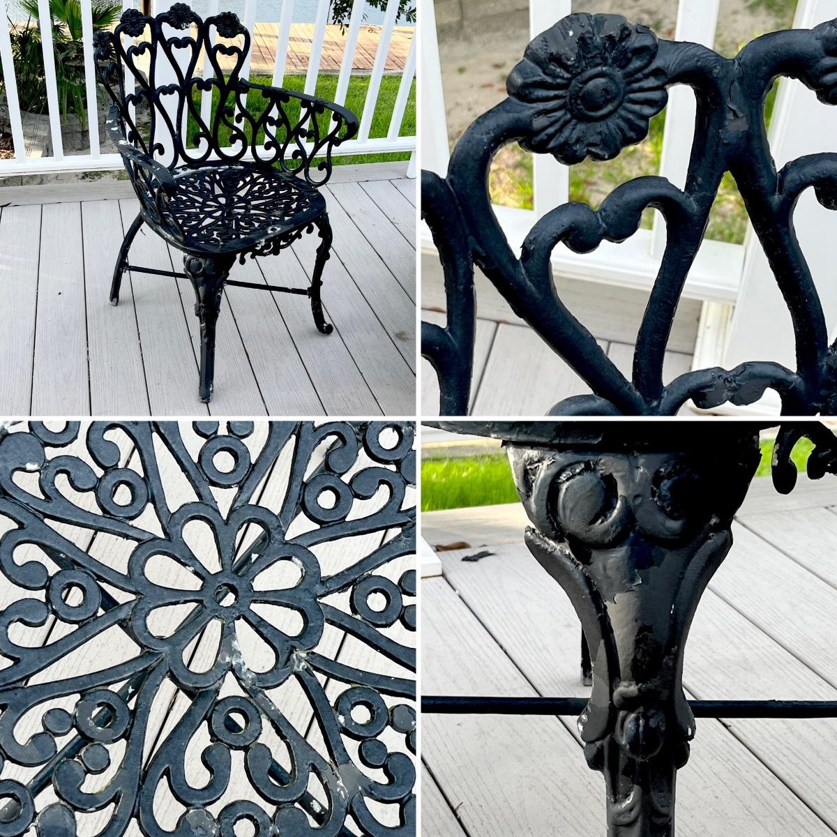 Includes = Table 27” H x 42” Round ~ (4) Chairs 32” H x 24” W x 22” ~ Needs TLC paint peeling as seen in photos