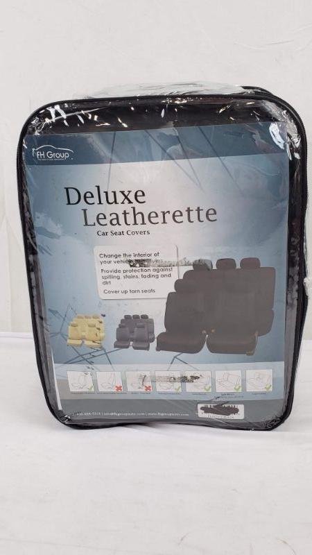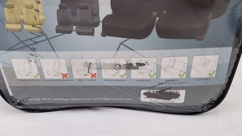 Black Deluxe Faux Leather Split Bench Car Seat Covers, Full Set - New