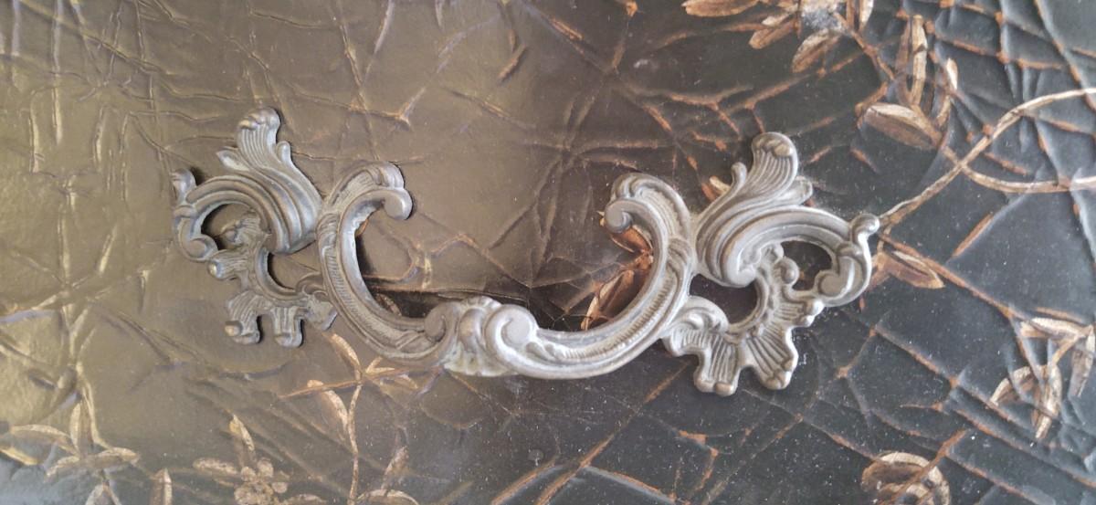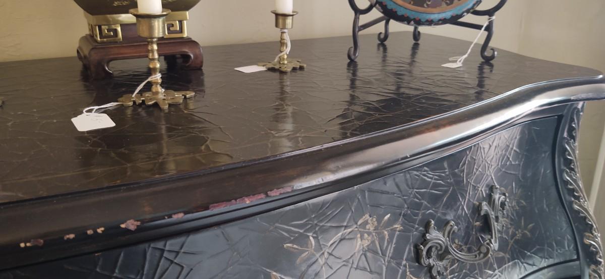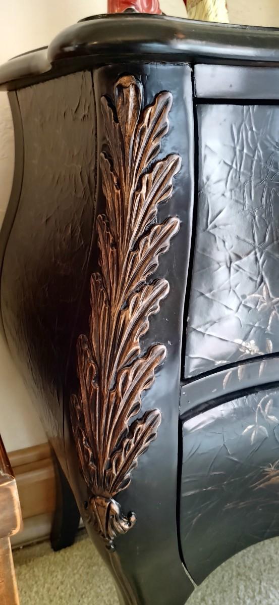 2 Drawers. Detail on front and sides. Measures 43 x 33 x 18 inches.