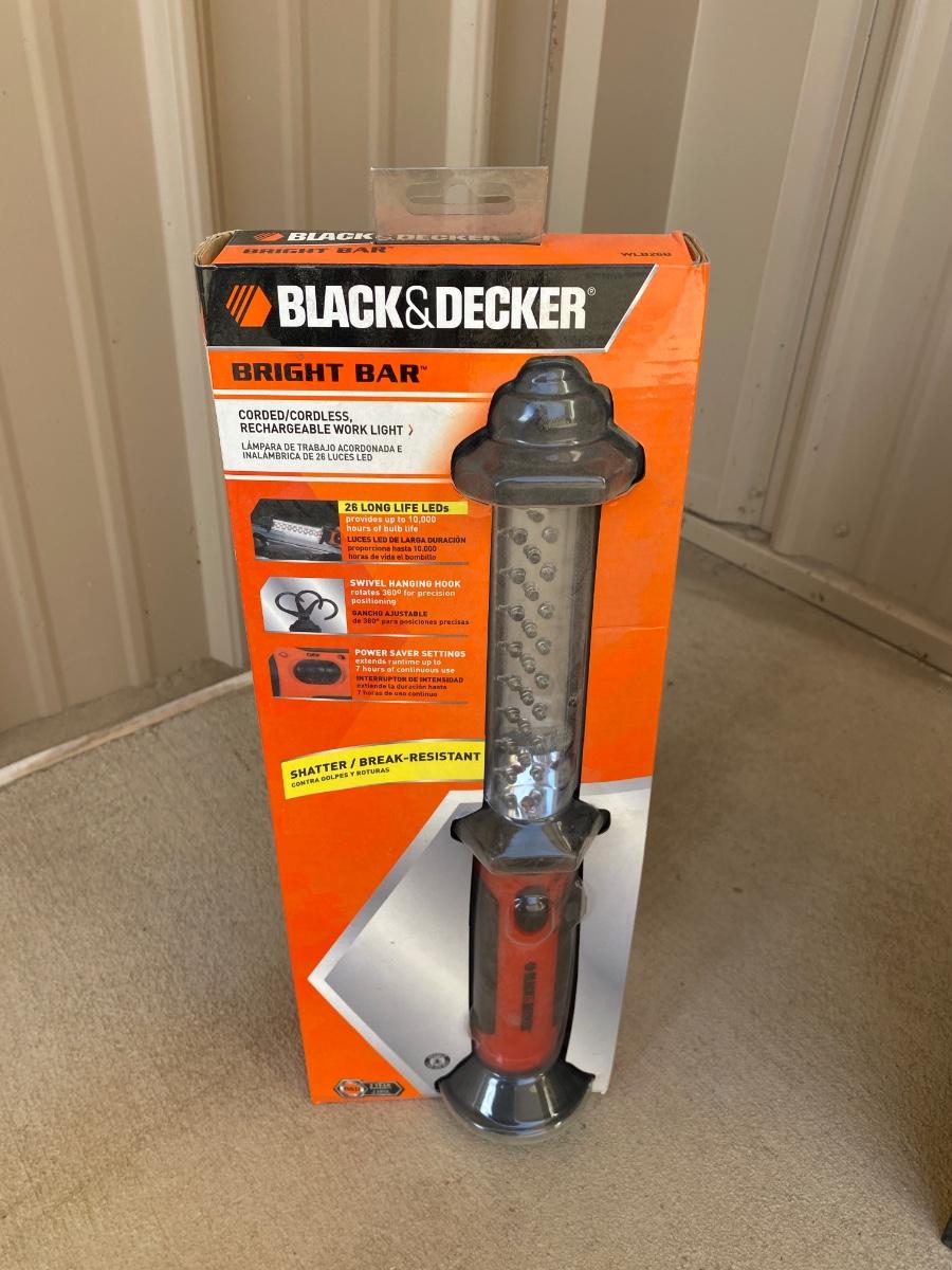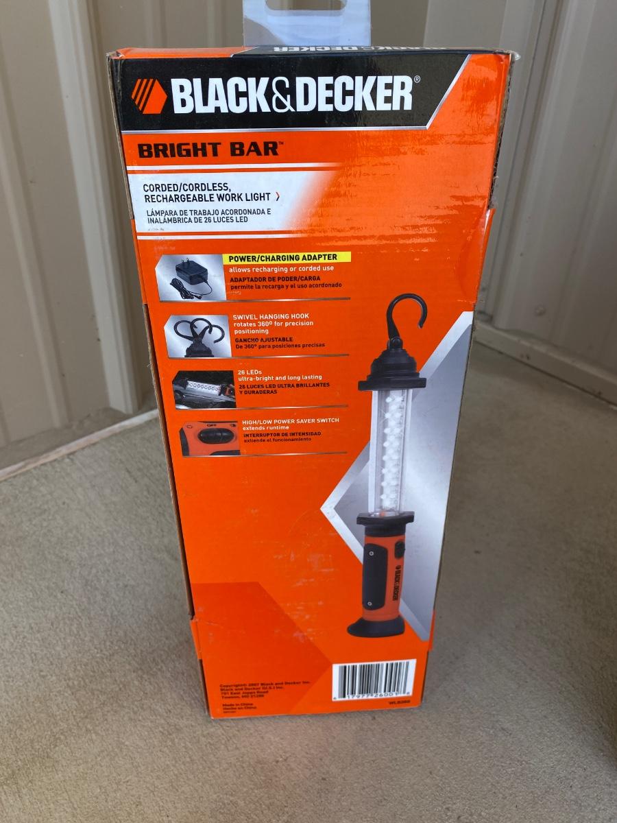 BLACK & DECKER BRIGHT BAR RECHARGEABLE WORK LIGHT & STINGER BUG ZAPPER